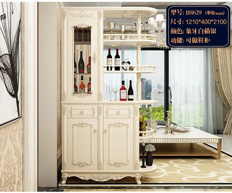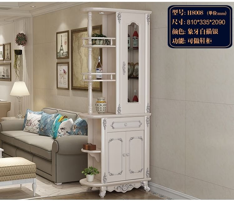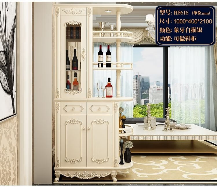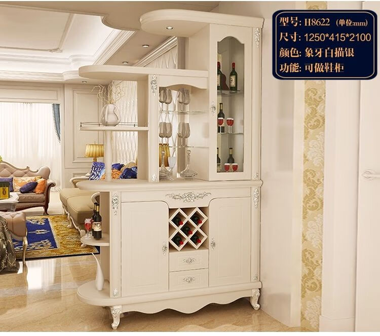 Xi Changfu living room partition cabinet entry entrance cabinet wine cabinet foyer screen double-sided decoration light luxury high-end style multi-functional shoe cabinet H8620 1.5 meters long ivory white door-to-door installation