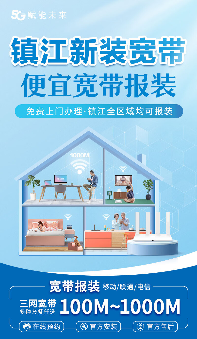 China Telecom Jiangsu Zhenjiang China Unicom mobile broadband application single integrated package home WIFI door-to-door installation appointment Zhenjiang Telecom cheap broadband order appointment consultation Zhenjiang Broadband application appointment official installation after-sales service