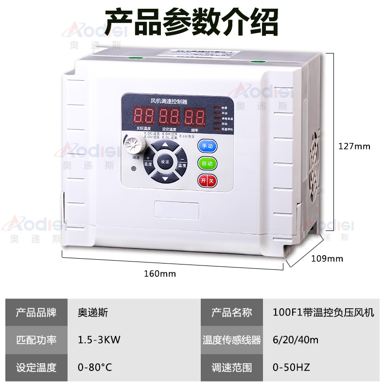 Yue Changsheng negative pressure fan frequency converter three-phase 380v farm exhaust fan frequency conversion speed controller 220v temperature control line 100F1-2.2KW380V