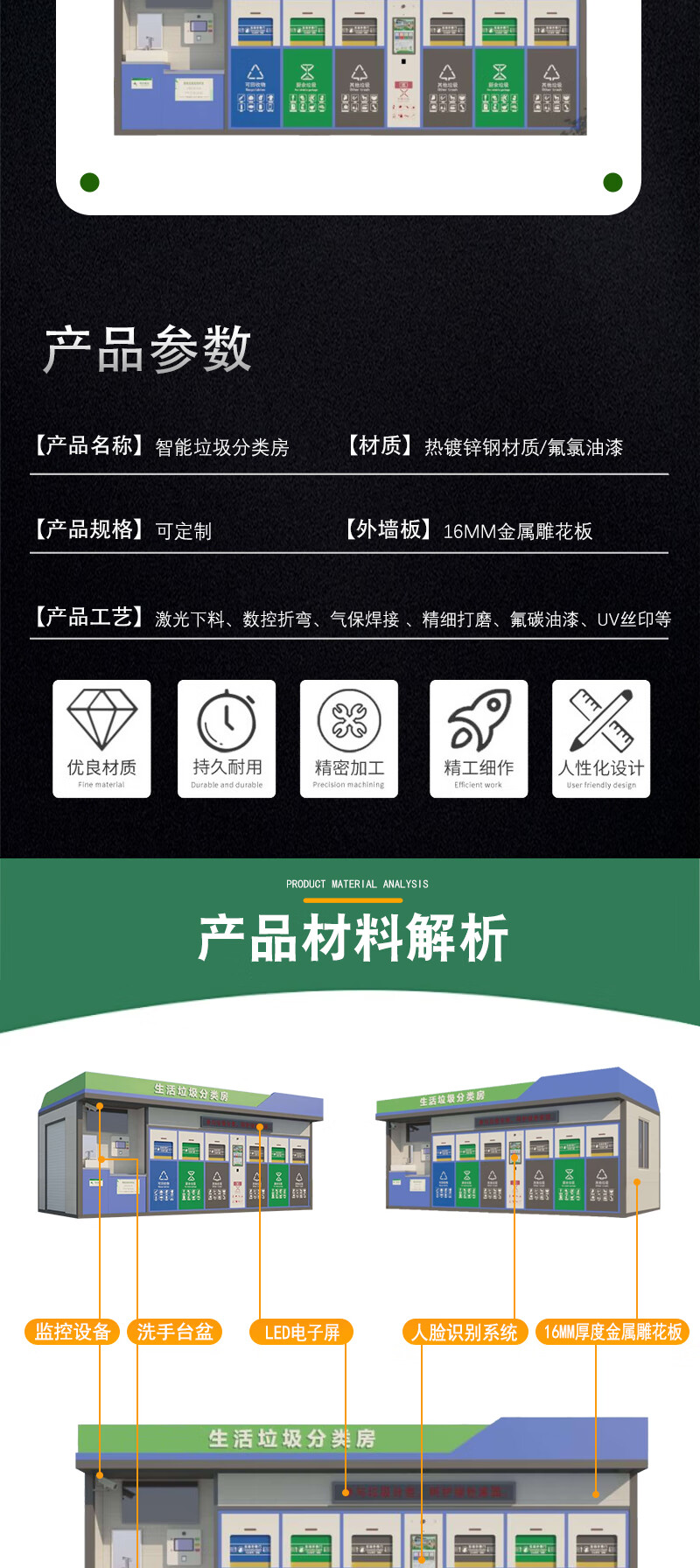 Dingguagua garbage classification house sanitation recycling collection booth outdoor community company school garbage classification room can be customized blue can be customized