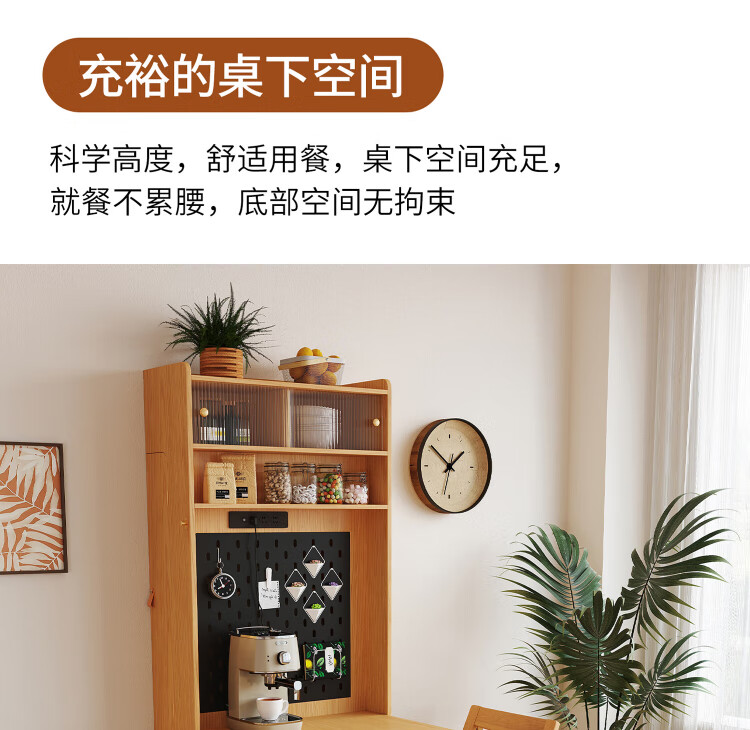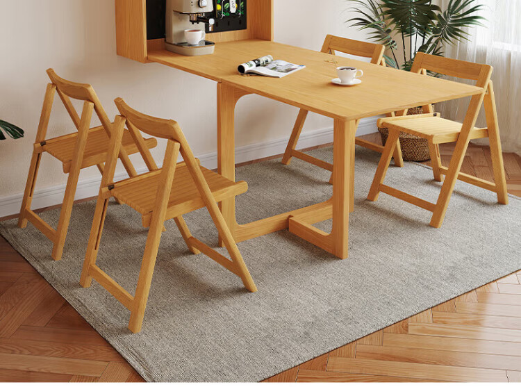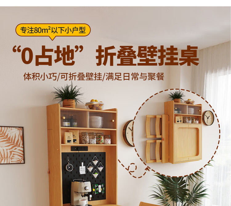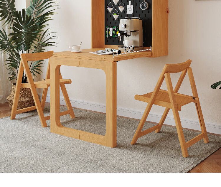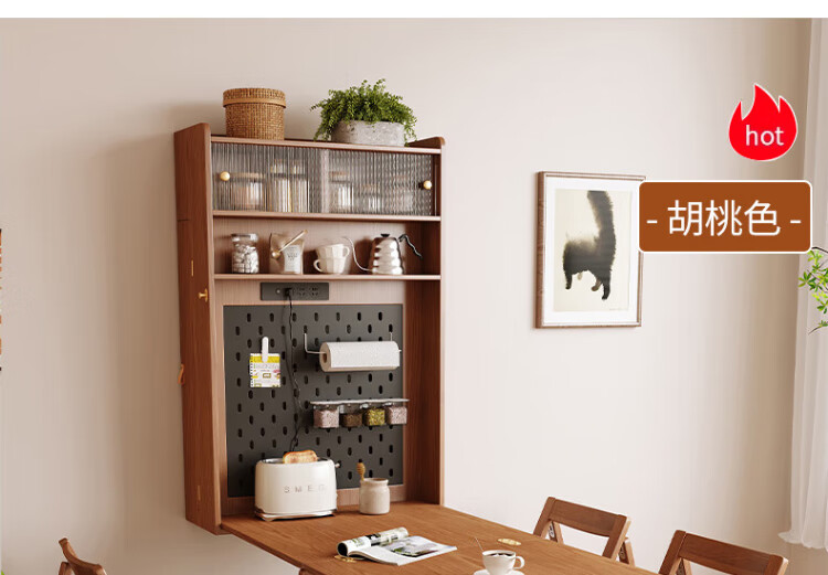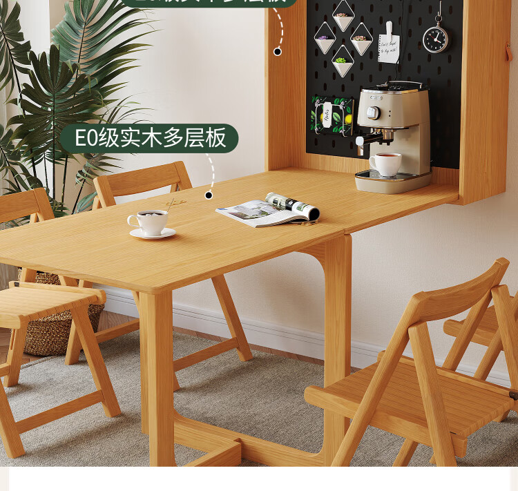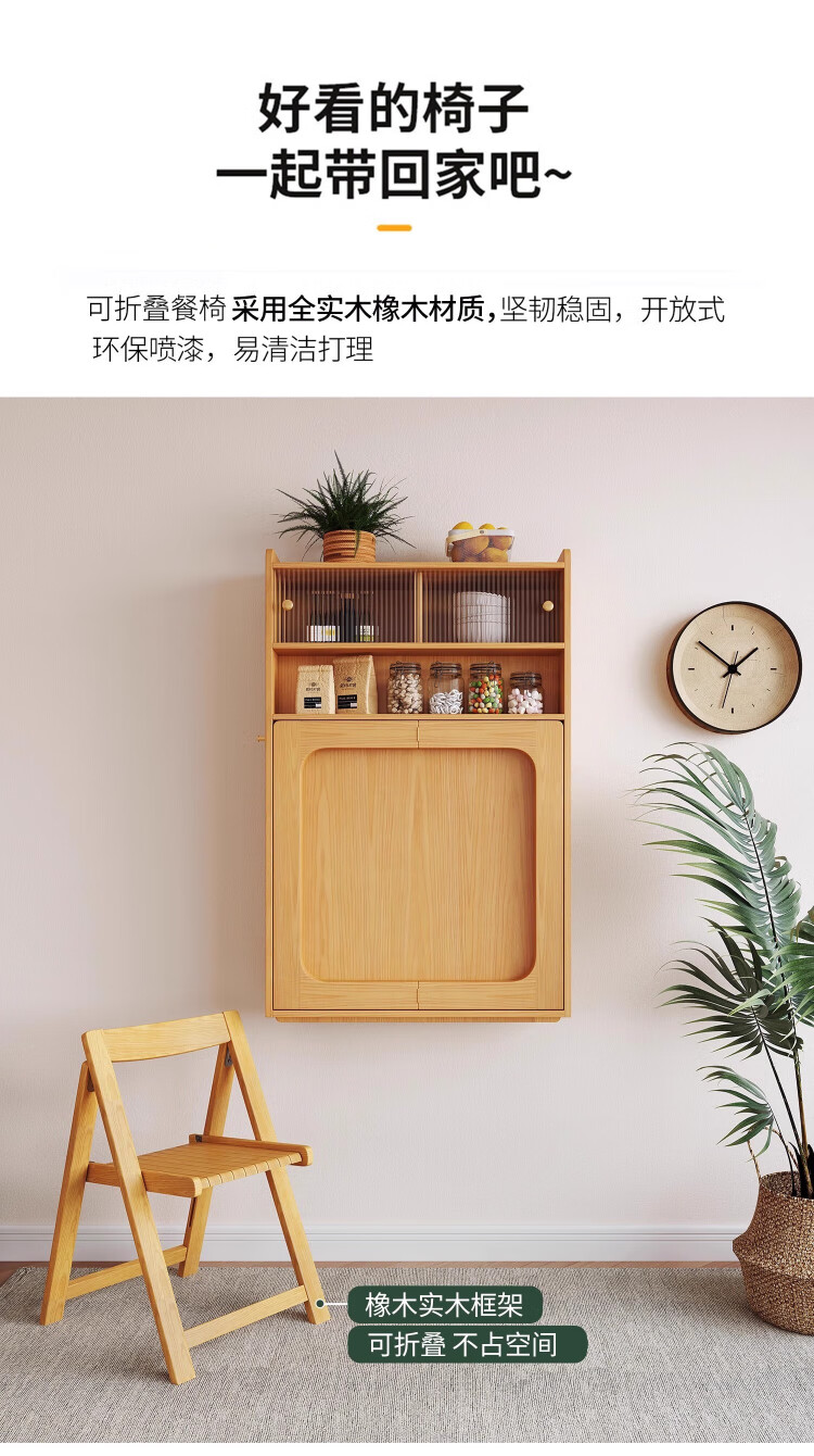 Silan Mengbei wall-mounted folding invisible dining table multi-functional wall-mounted sideboard integrated small household solid wood wall-mounted table wall-mounted dining table (wood color) upgraded multi-function with plug-in storage chair