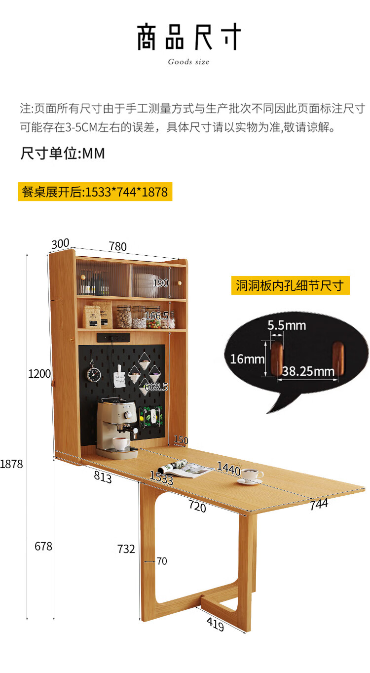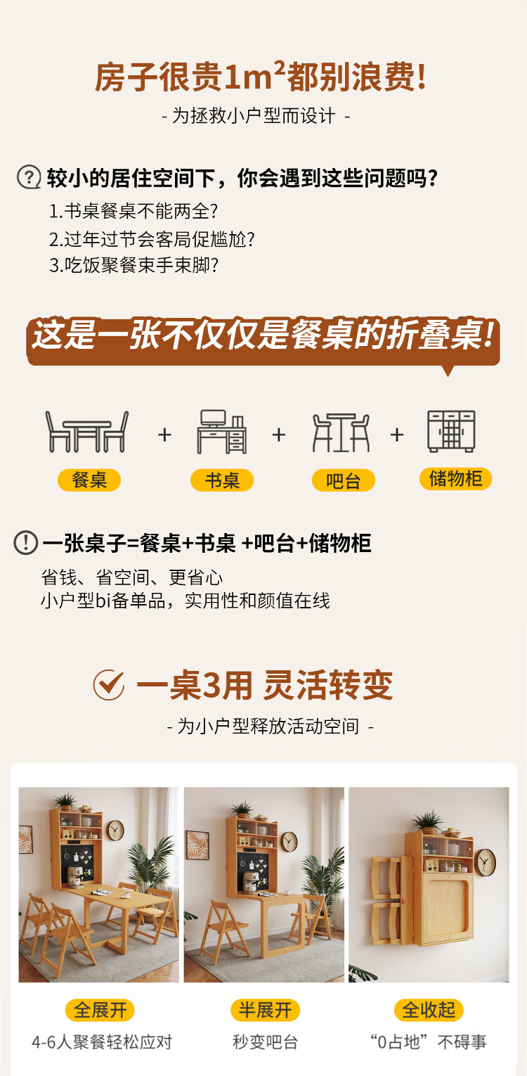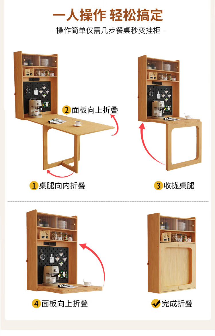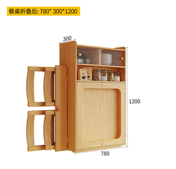 Silan Mengbei wall-mounted folding invisible dining table multi-functional wall-mounted sideboard integrated small household solid wood wall-mounted table wall-mounted dining table (wood color) upgraded multi-function with plug-in storage chair