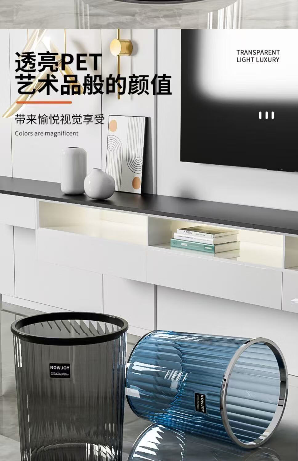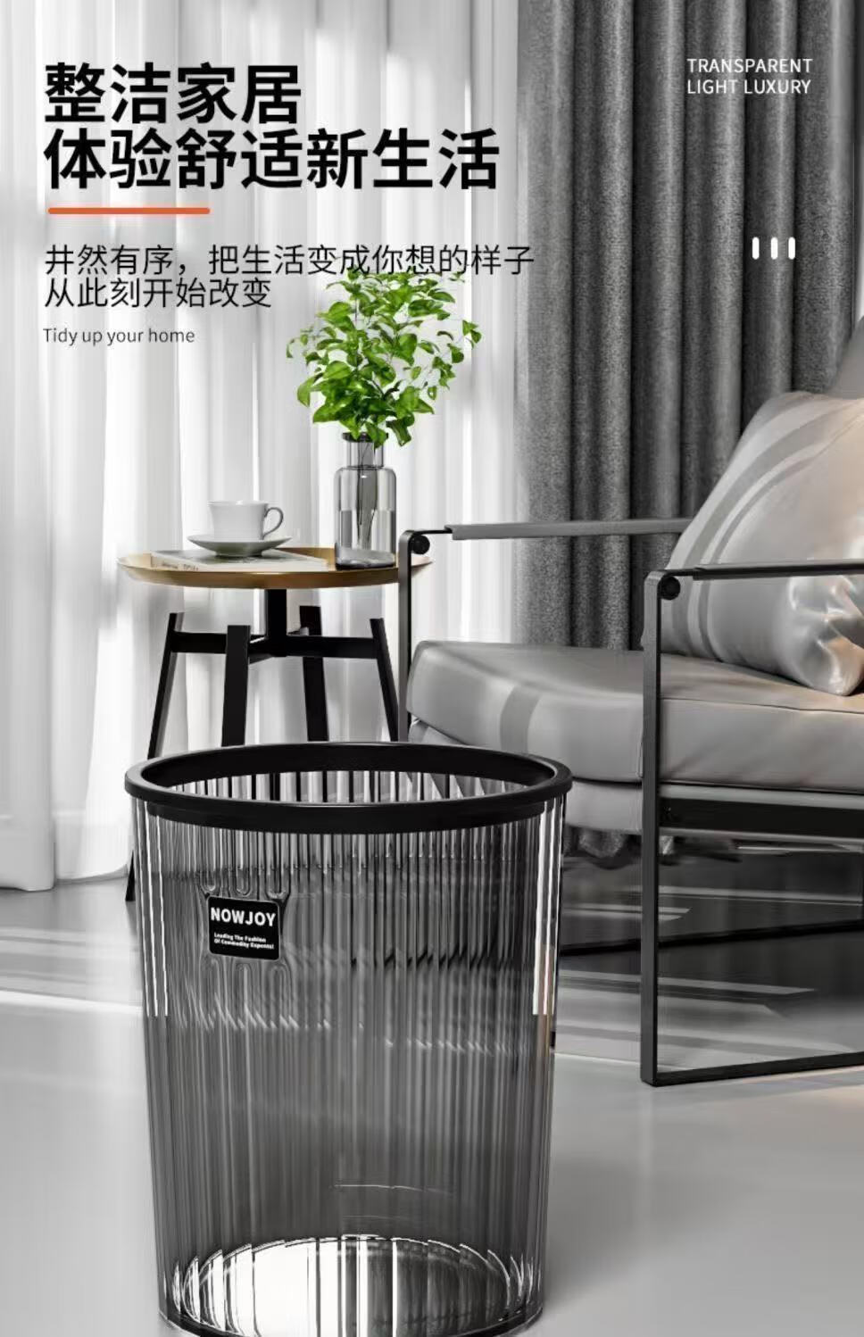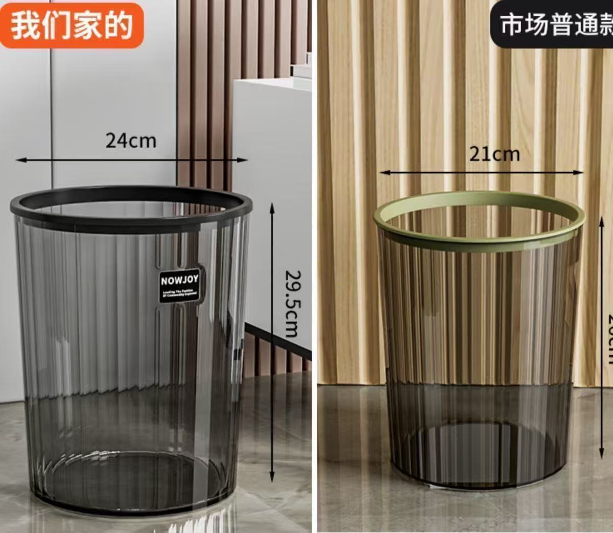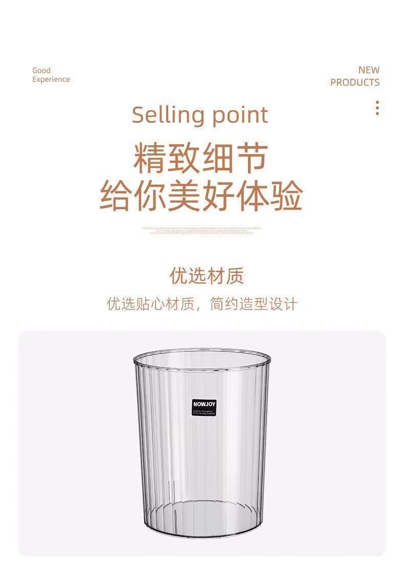 New light luxury transparent large trash can large capacity flower bucket bedroom living room office kitchen bathroom home transparent color-15L upgraded thickened version