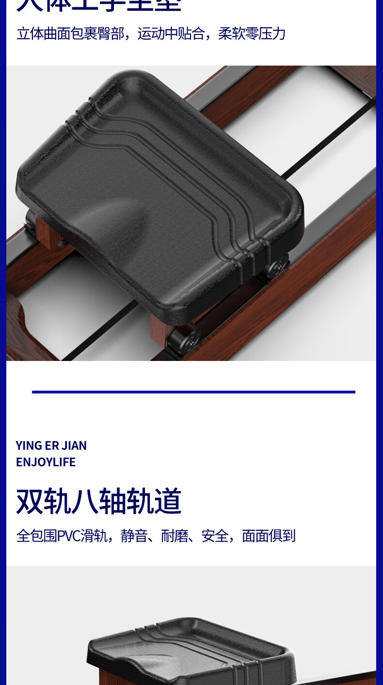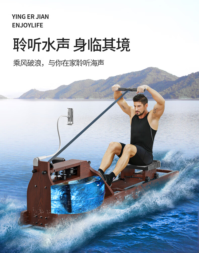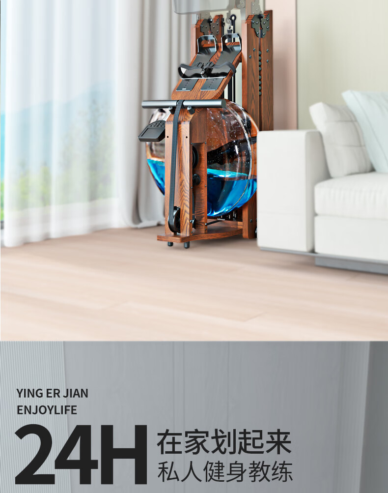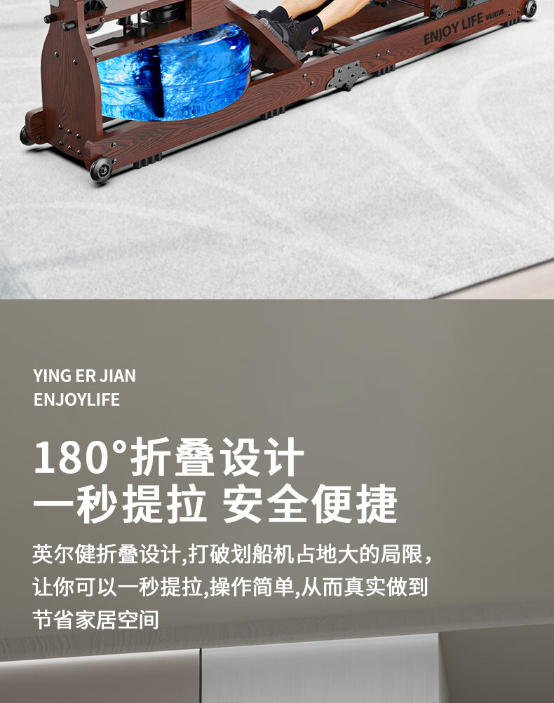 Yingerjian Electric Water Resistance Intelligent Rowing Machine Foldable Resistance Adjustable Home Indoor Silent Fitness Log Basic Edition - Brown