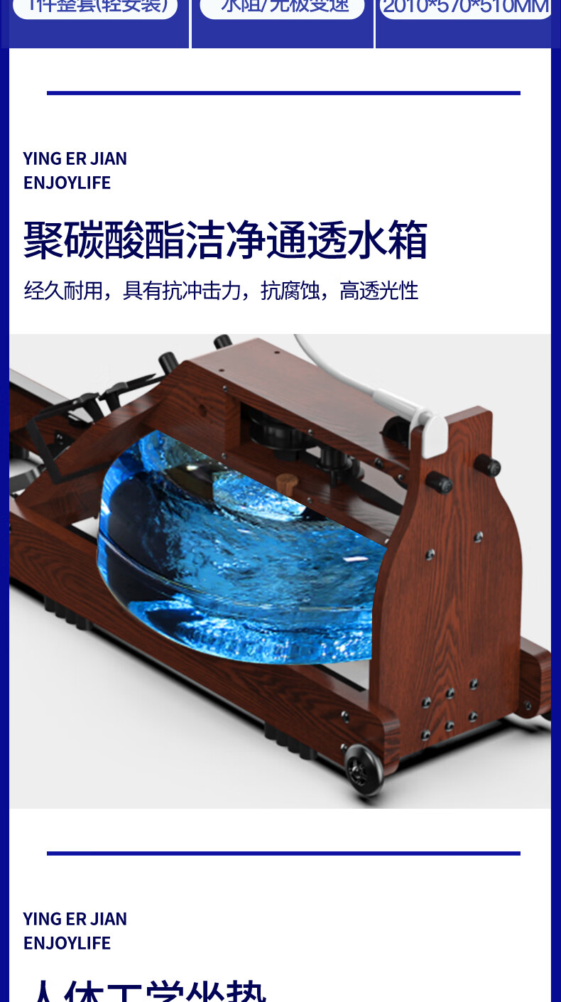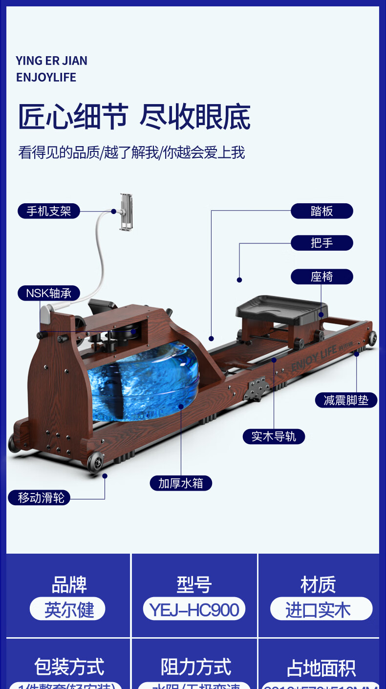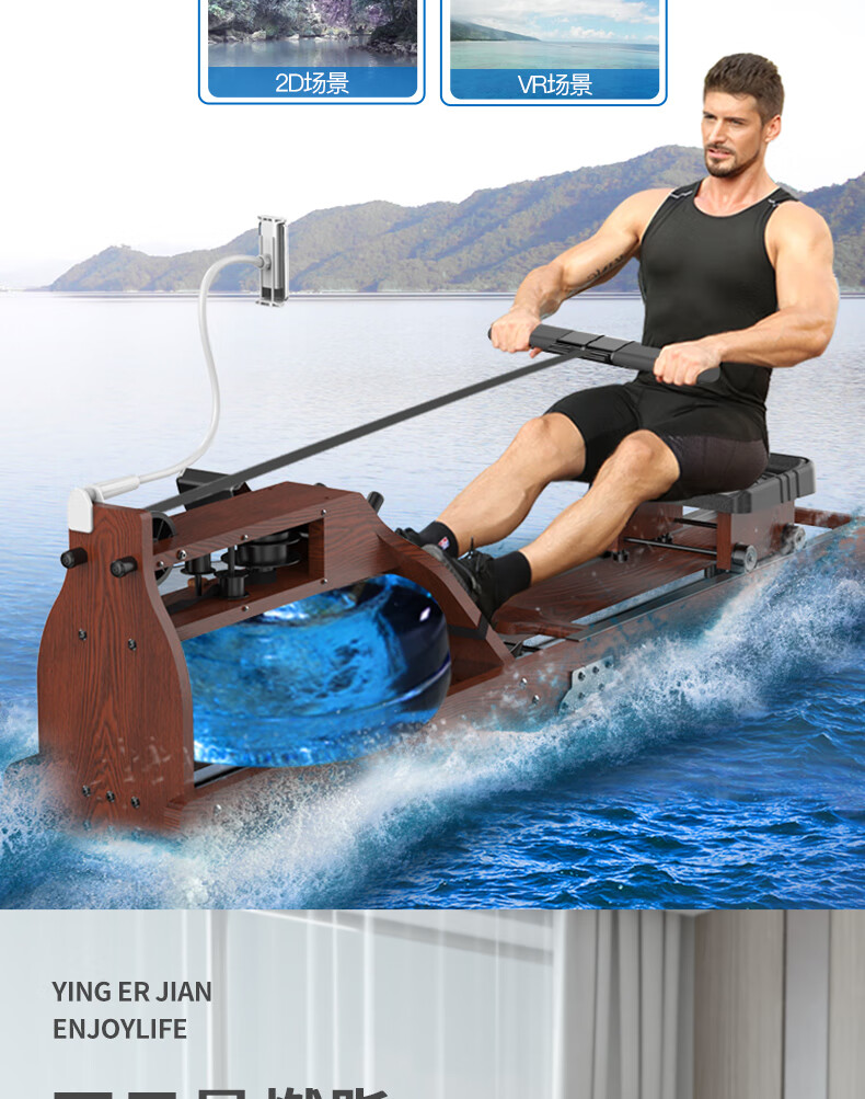 Yingerjian Electric Water Resistance Intelligent Rowing Machine Foldable Resistance Adjustable Home Indoor Silent Fitness Log Basic Edition - Brown