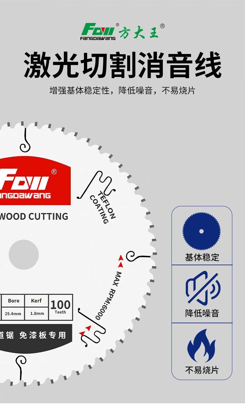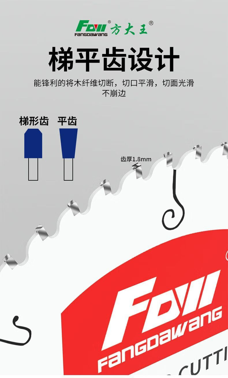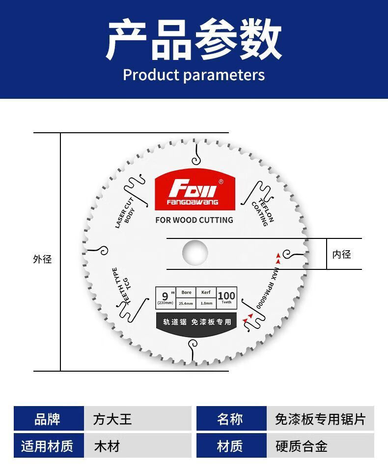 Fang Dawang industrial-grade paint-free board saw blade special-purpose woodworking saw ladder flat tooth non-collapsing edge ecological board cutting 4-inch saw tooth ladder flat tooth 9 inches 100 teeth