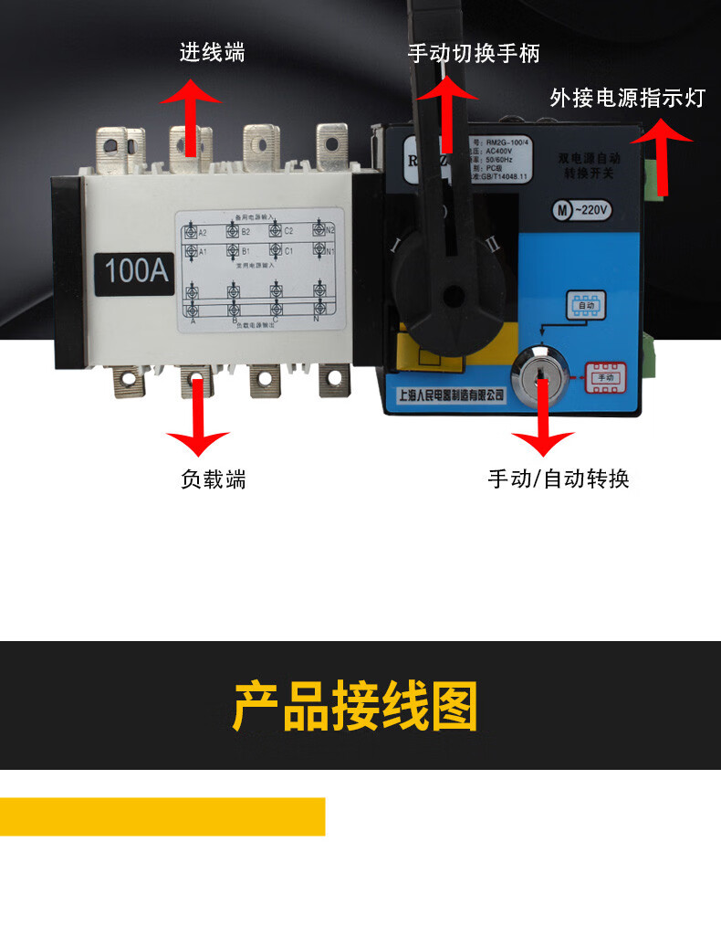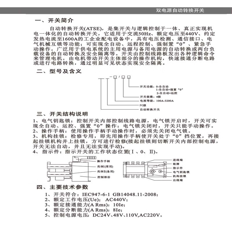 Three-phase four-wire 380v isolated PC-level switch dual power automatic transfer switch 4p63a 4p 100A