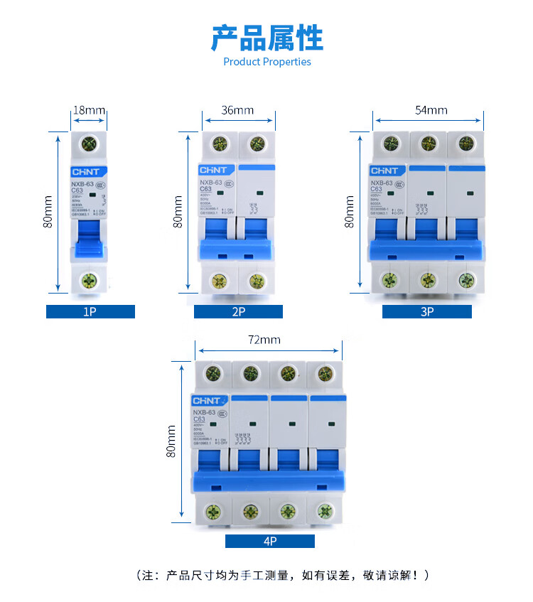 Chint small circuit breaker DZ47 household air switch-63NXB-125 1A-125A 1P2P3P4P 1P 1A