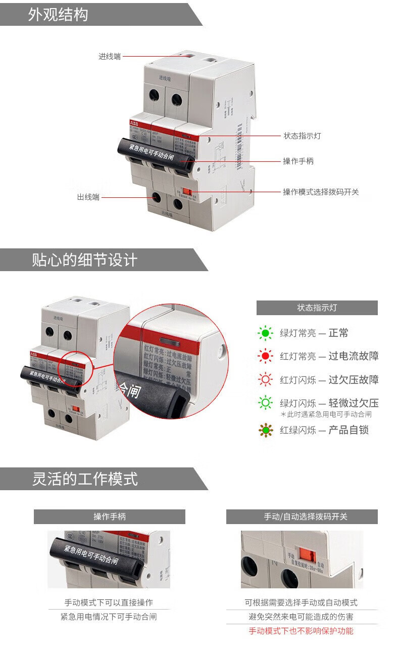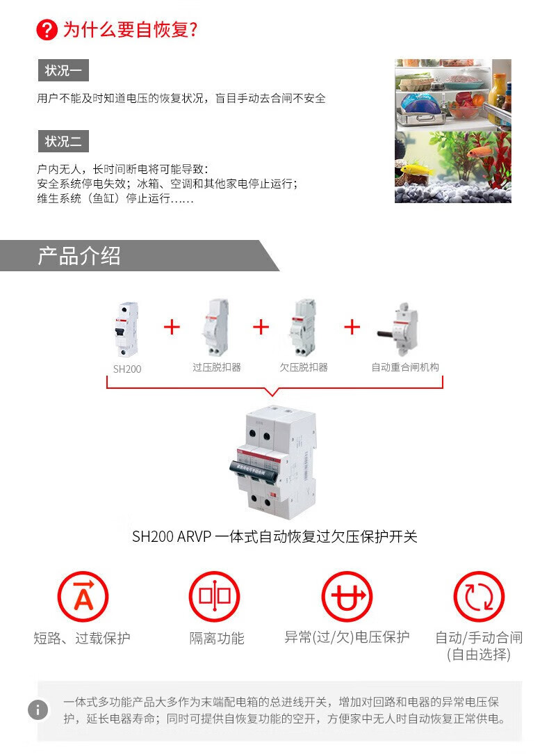 ABB circuit breaker SH series ARVP circuit breaker with self-restoring overvoltage and undervoltage protection 1+NA 63A