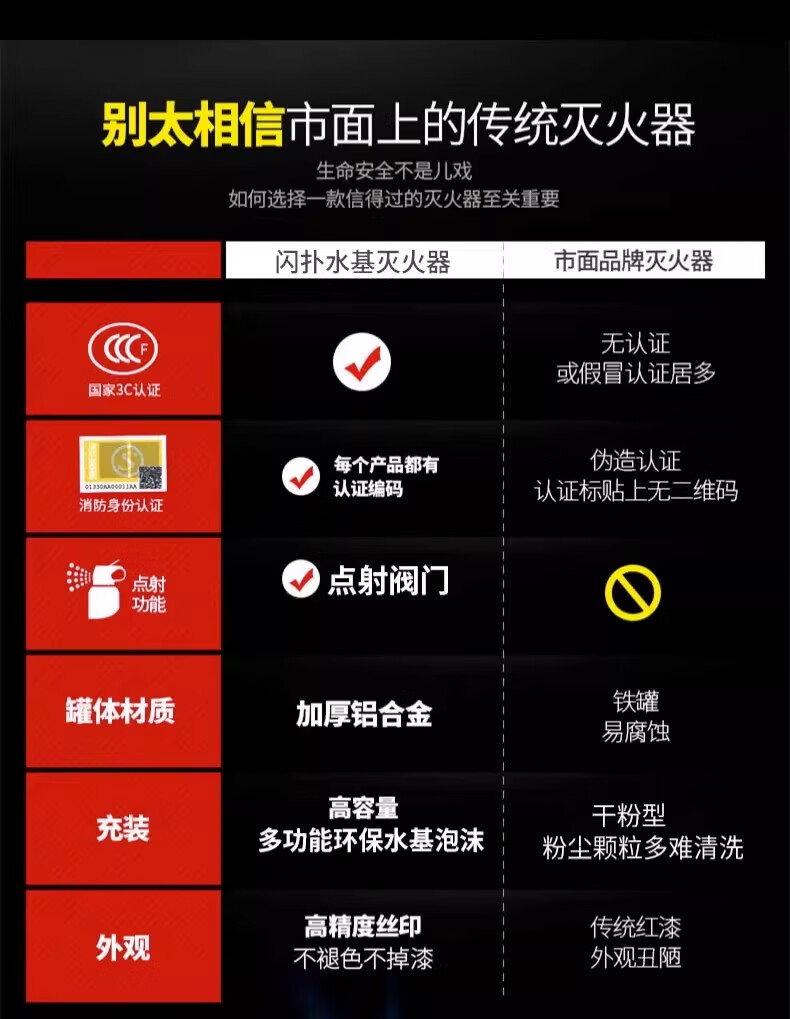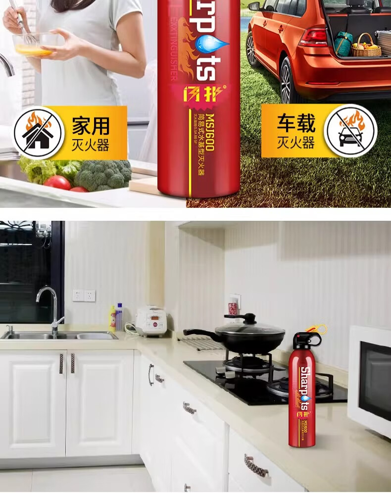 Flash car fire extinguisher small portable car private car annual inspection household water-based fire equipment fire extinguishing bottle 620ml water-based upgraded version 13B red