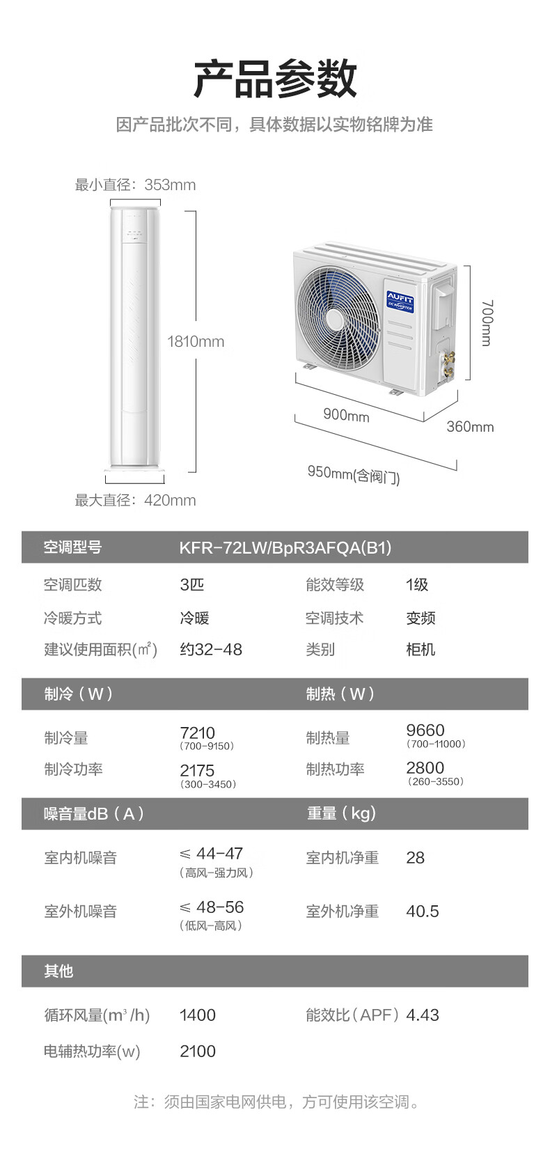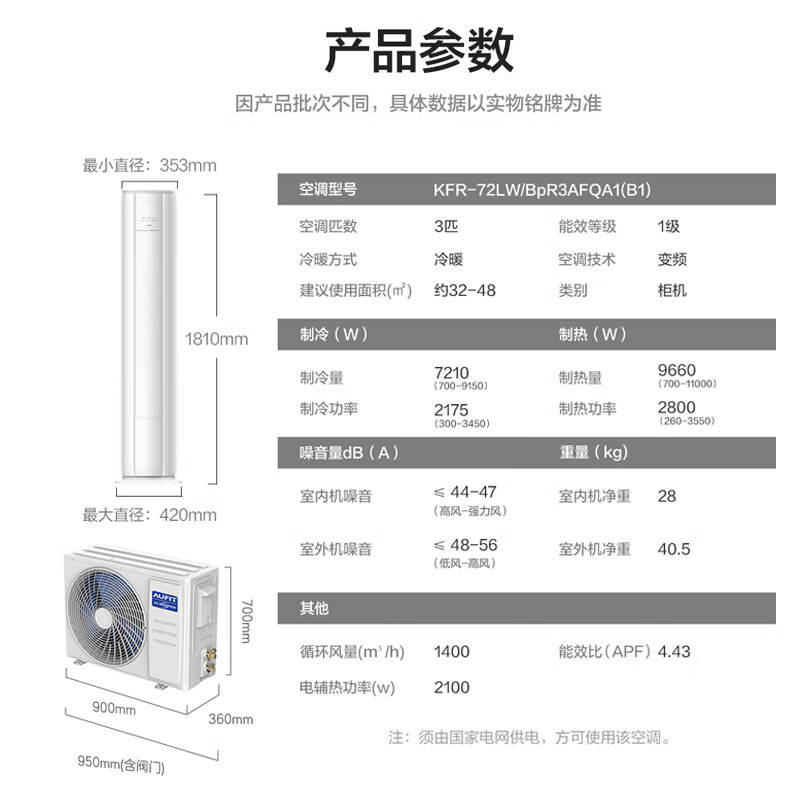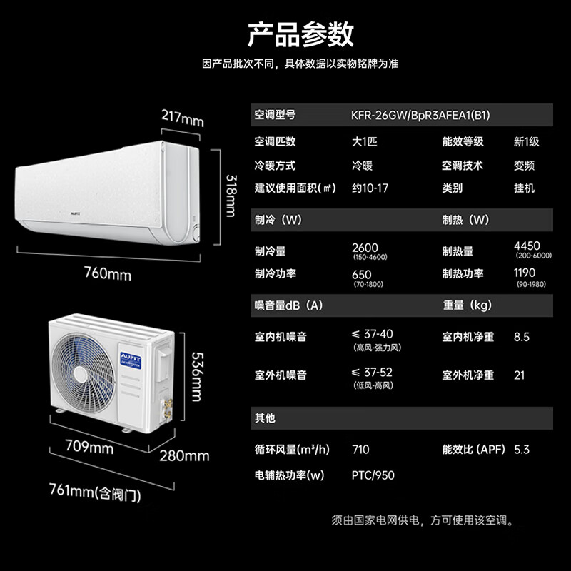Produced by AUFIT air conditioner AUX, large 1.5 hp, 2 hp, 3 hp, new first-level energy efficiency, frequency conversion cooling and heating, energy-saving, WiFi smart control, household hang-up, Beijing and warehouse delivery, large 1.5 hp, first-level energy efficiency, without WiFi cooling and heating, on-hook