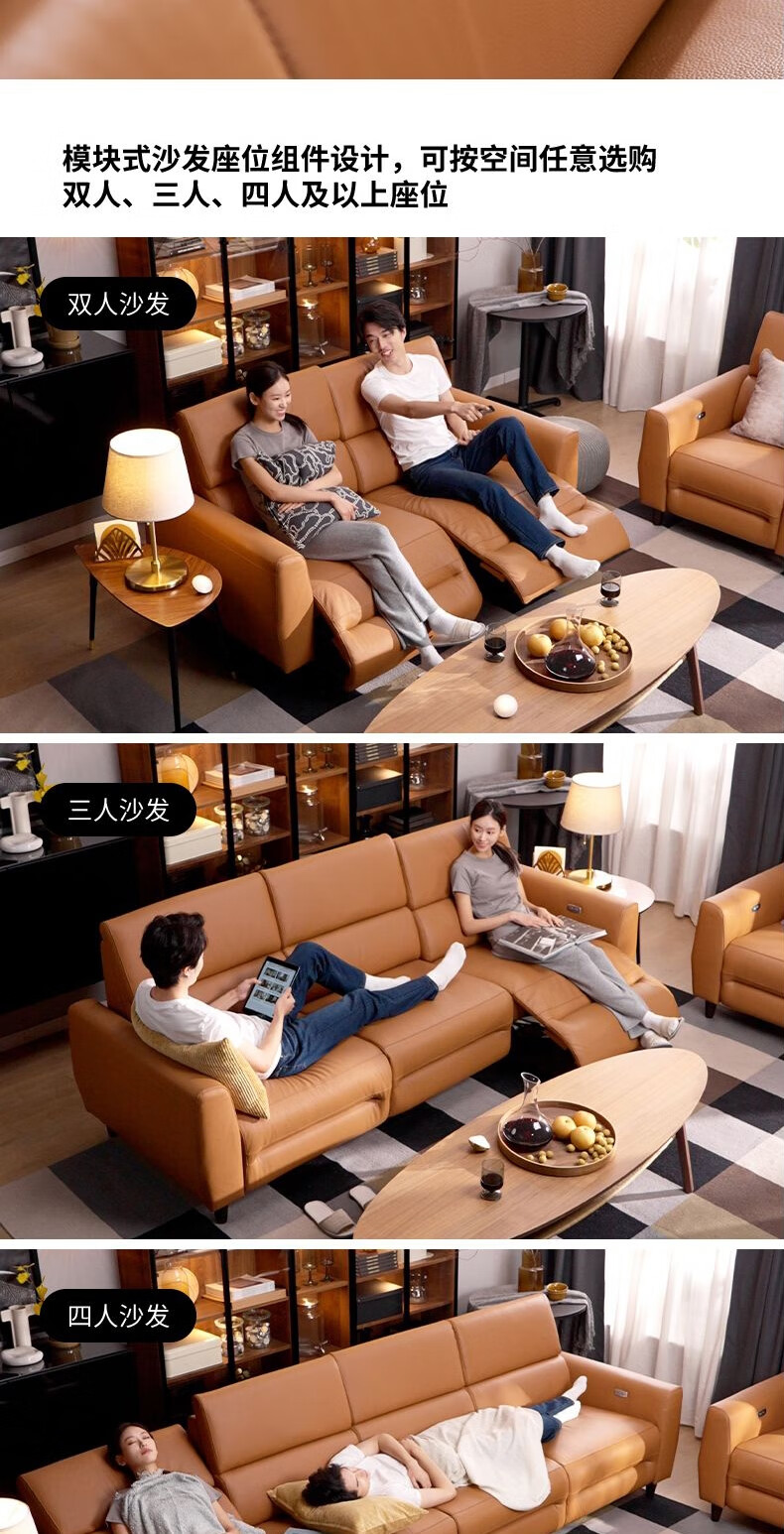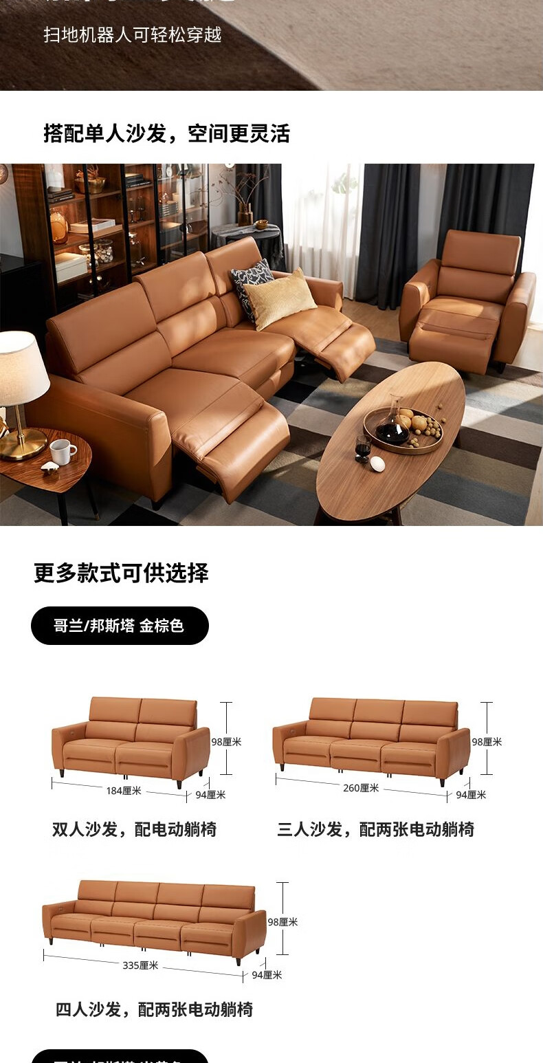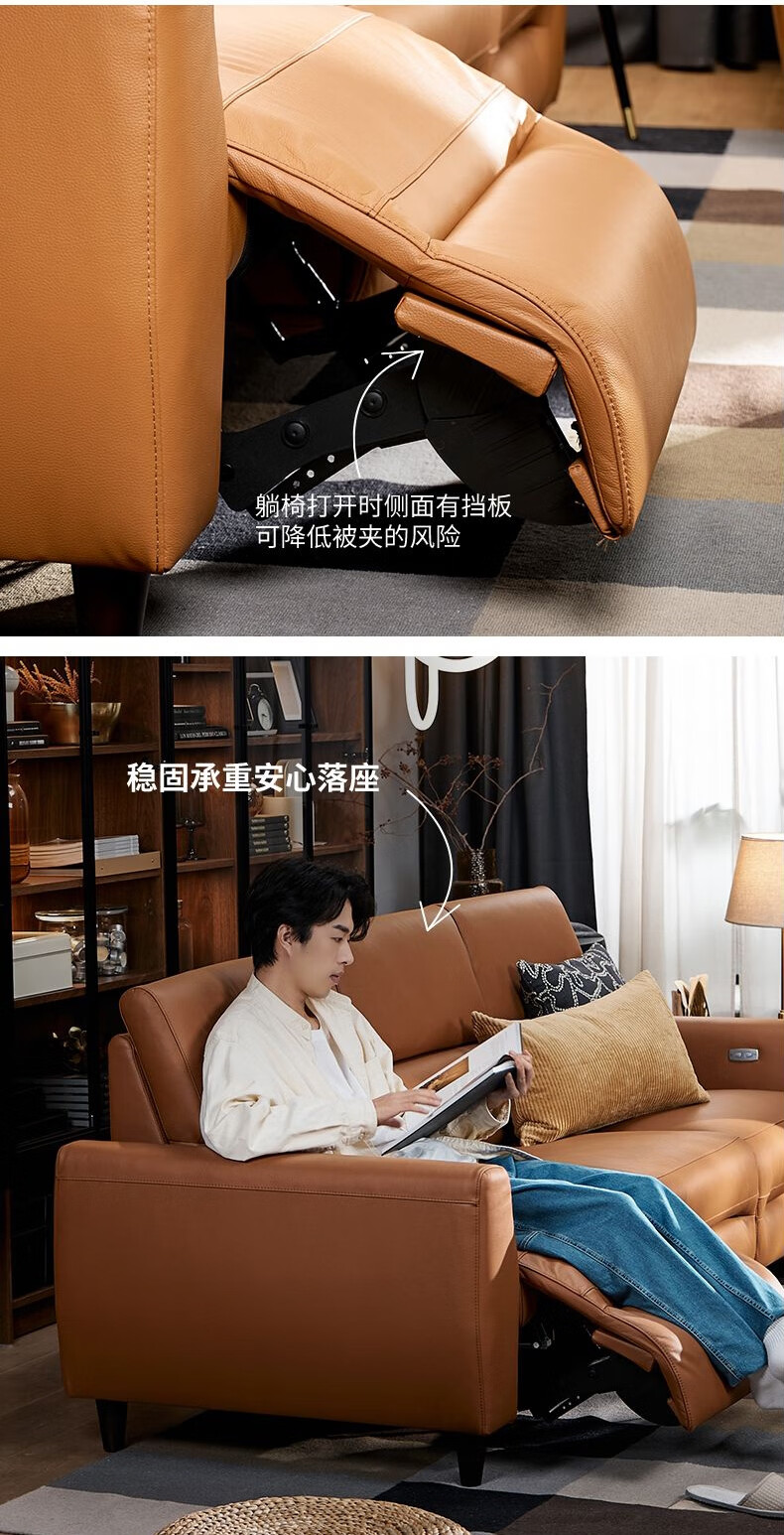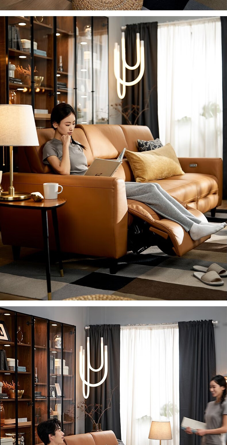 IKEA (IKEA) RULLERUM first-layer cowhide electric three-person sofa living room seat double sofa with electric recliner golden brown