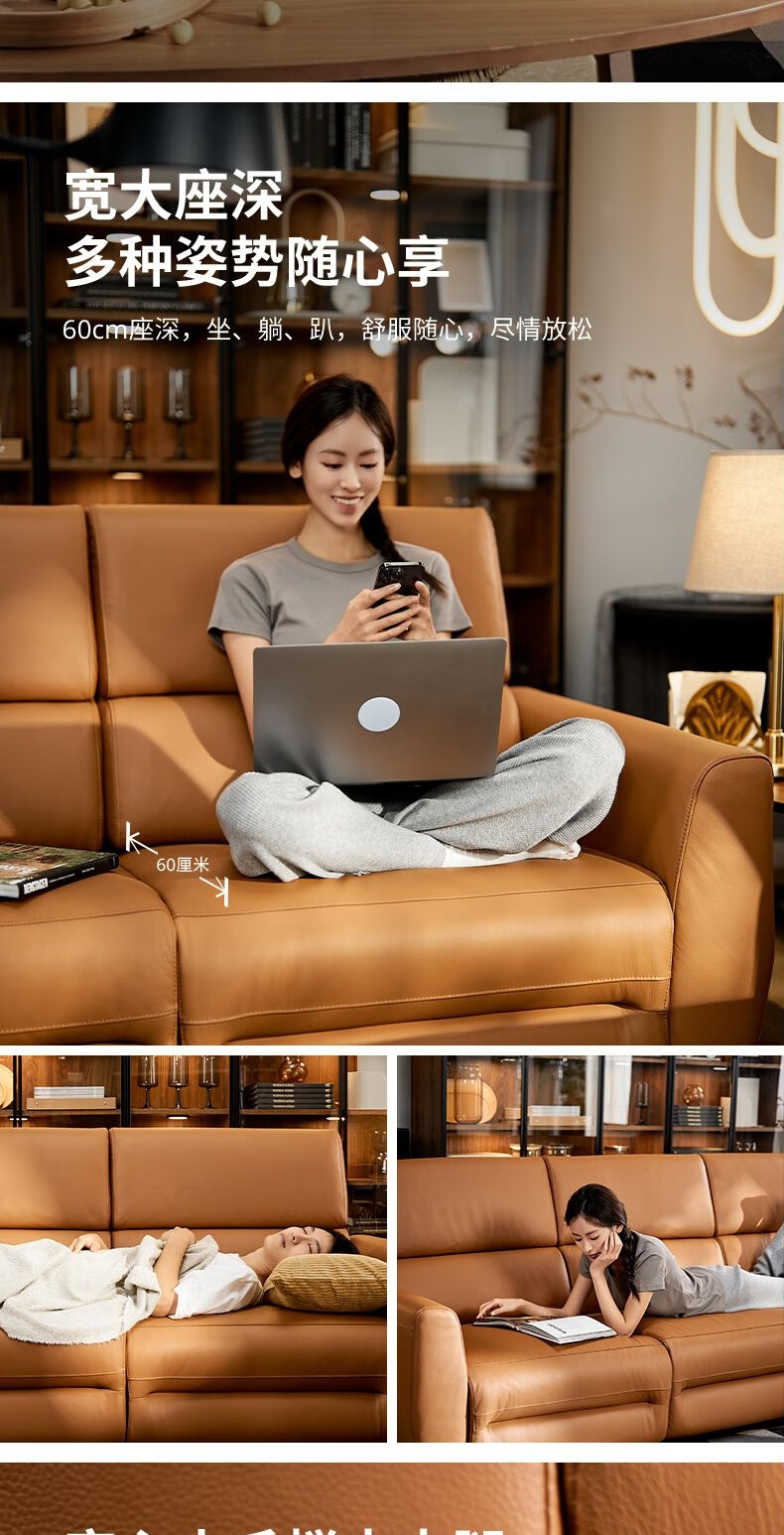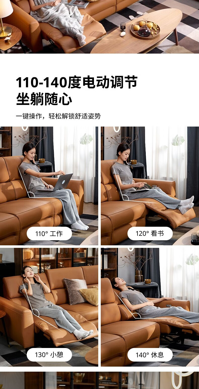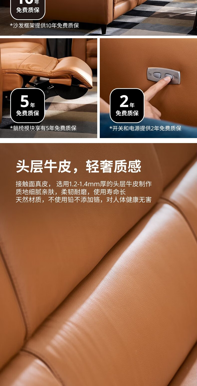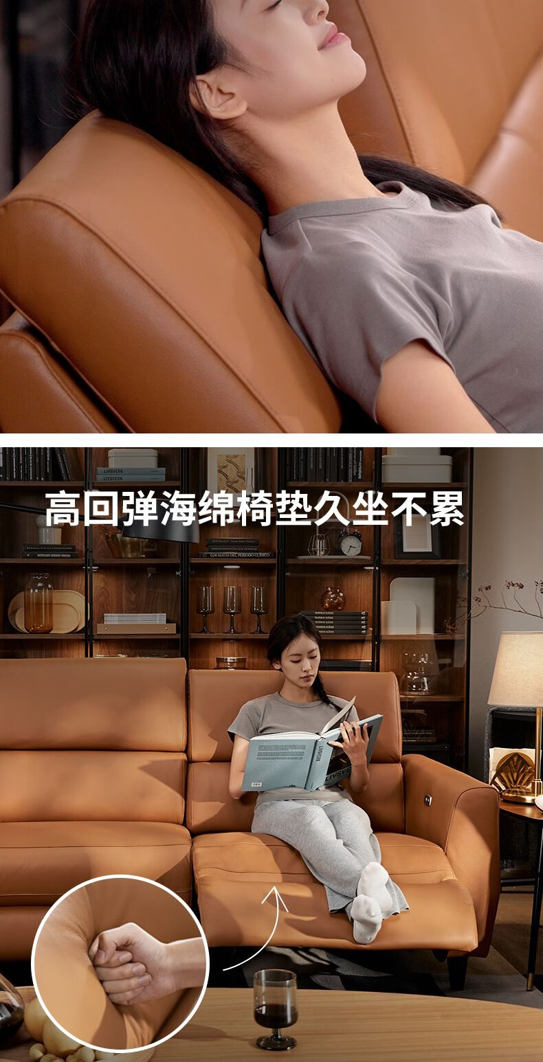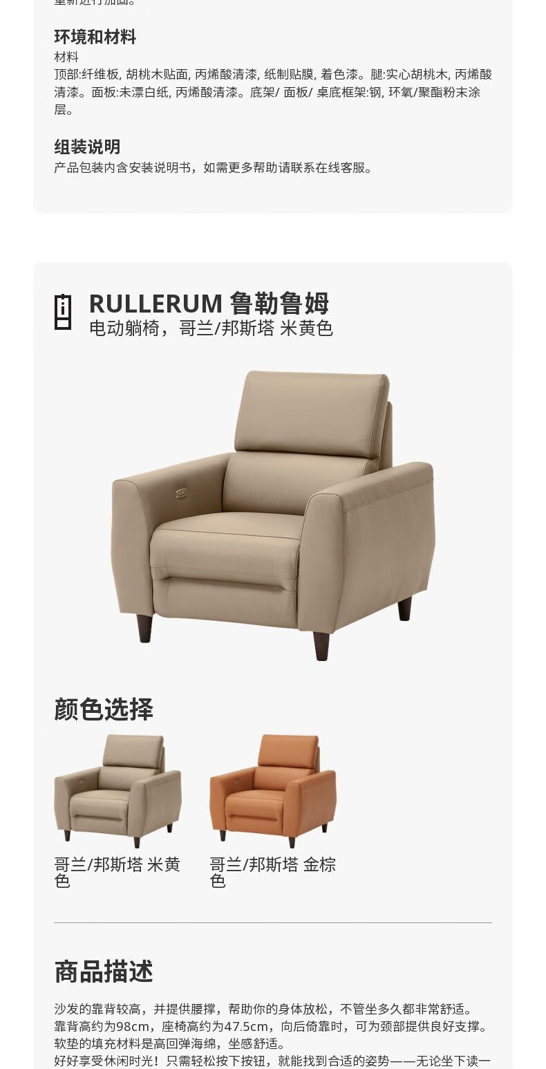 IKEA (IKEA) RULLERUM first-layer cowhide electric three-person sofa living room seat double sofa with electric recliner golden brown