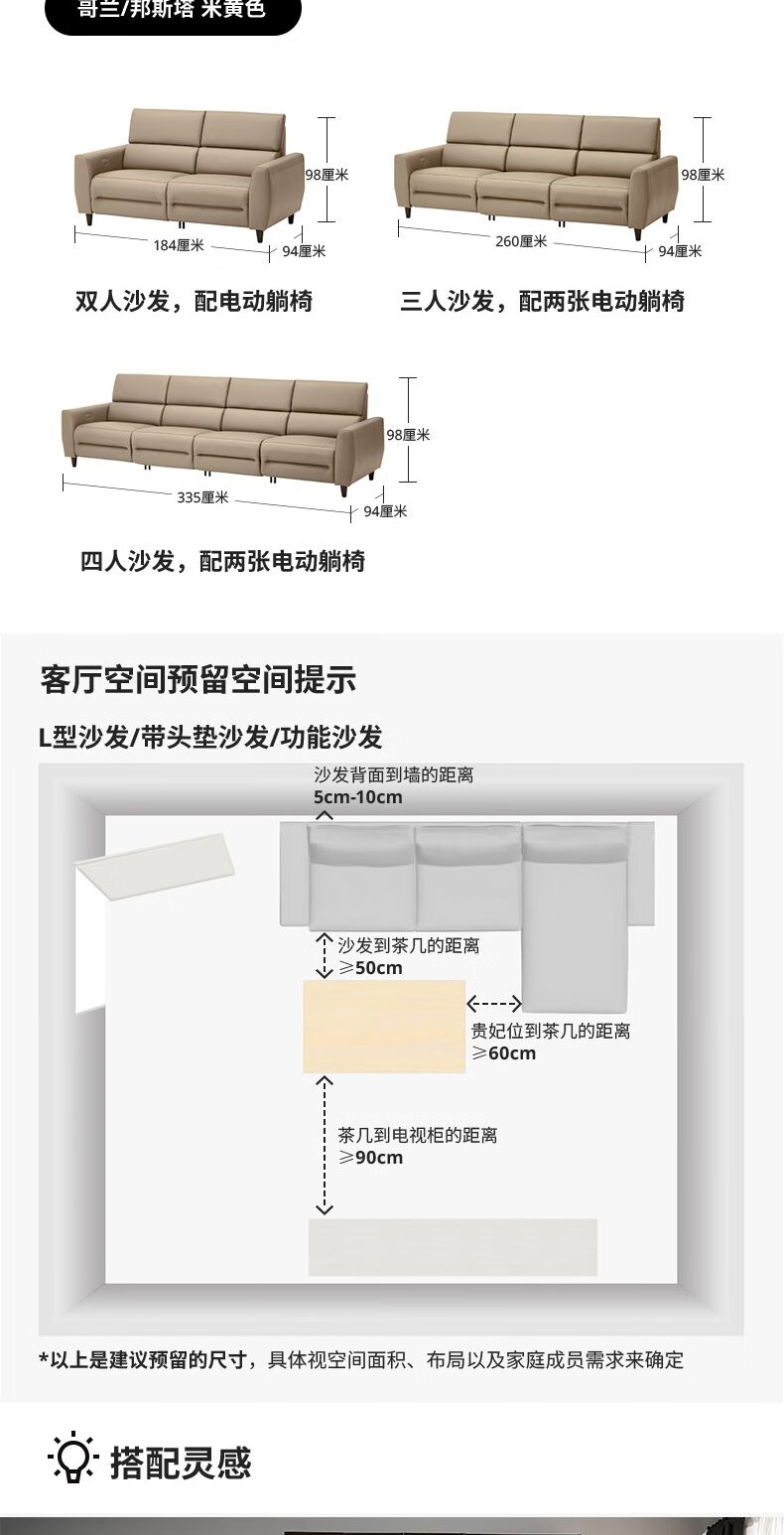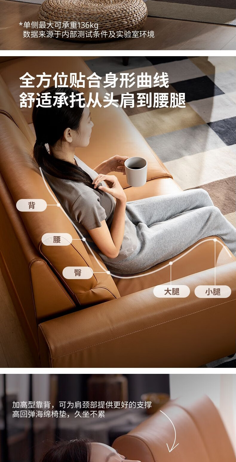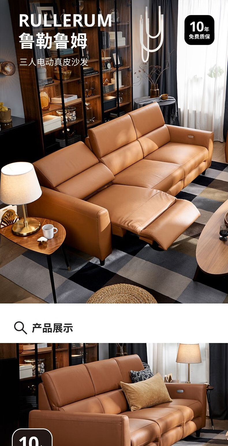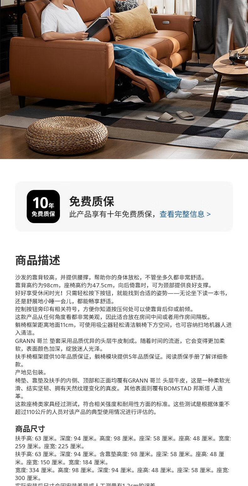 IKEA (IKEA) RULLERUM first-layer cowhide electric three-person sofa living room seat double sofa with electric recliner golden brown