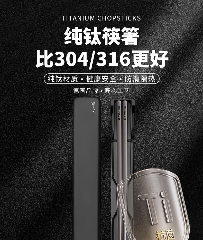 Yimi pure titanium chopsticks single-pack portable storage box tableware for one person household high-end antibacterial and mildew-proof titanium alloy chopsticks square tail titanium chopsticks + black portable box