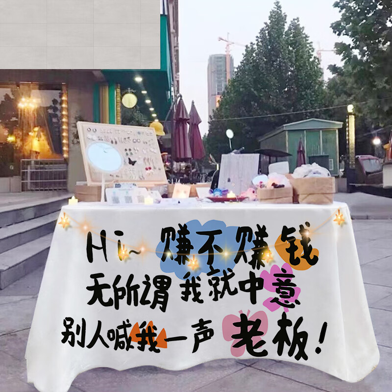 Stall tablecloth, college student entrepreneurial night market snack street stall stall advertising sign cloth, trunk decorative cloth, stall tablecloth, call me boss, 150X130 cm with light