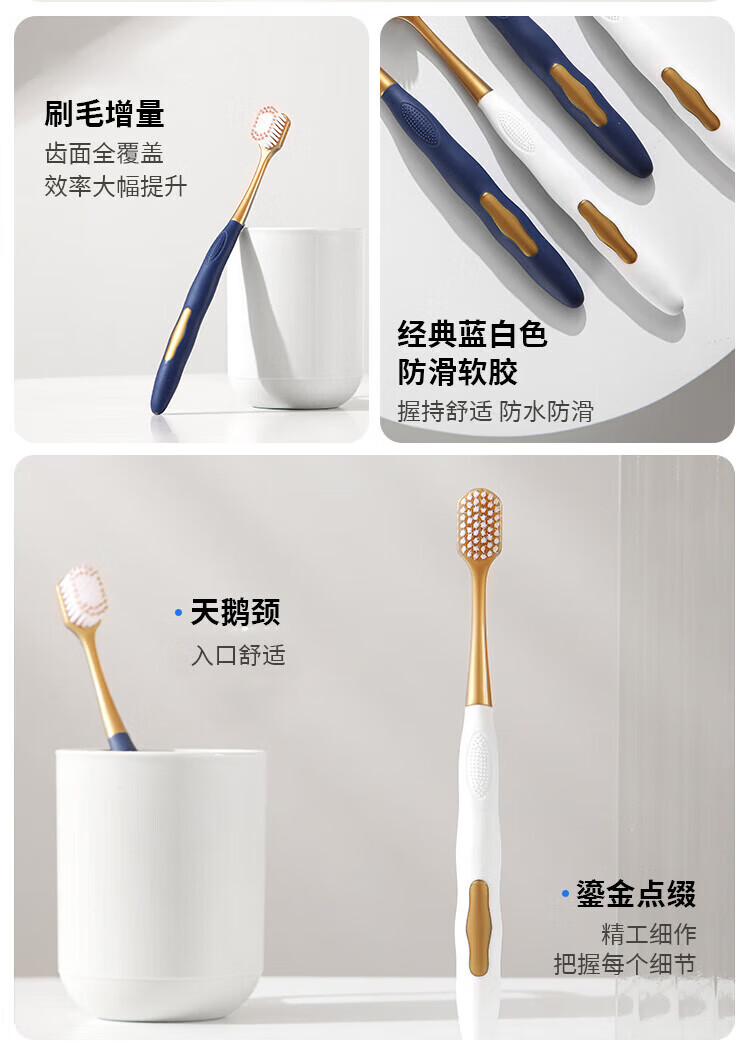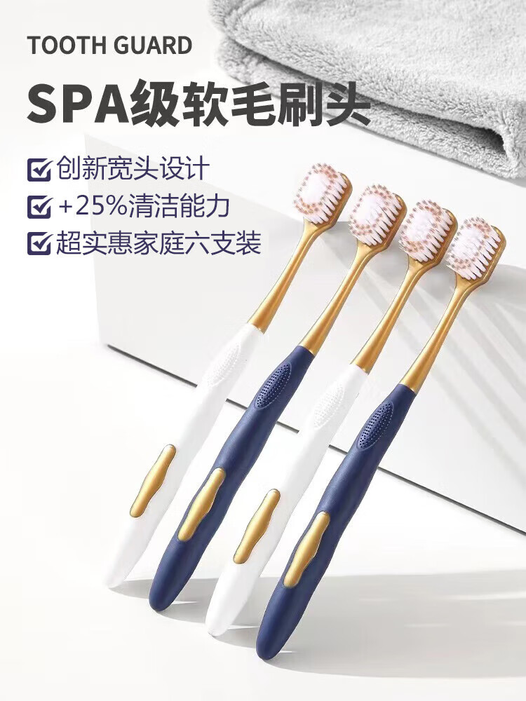 Toothbrush with soft bristles for adult family use, ultra-fine and ultra-soft toothbrush (wide head, soft bristles)* 6 pieces 1