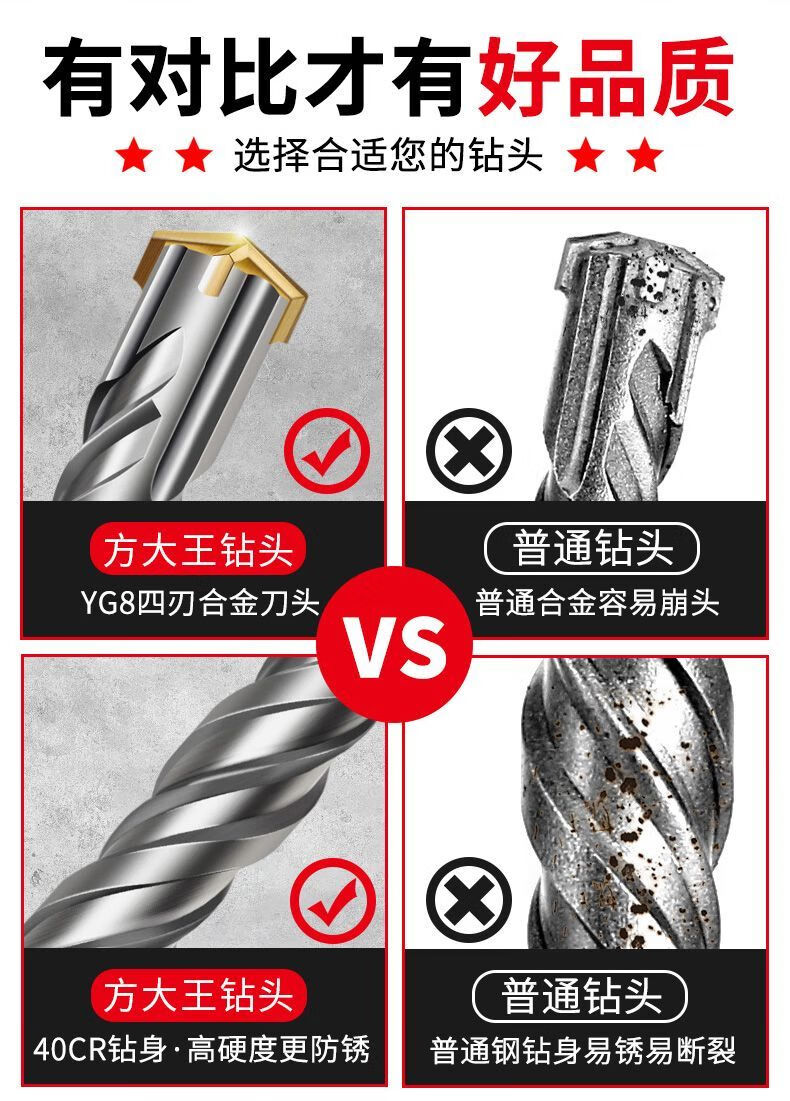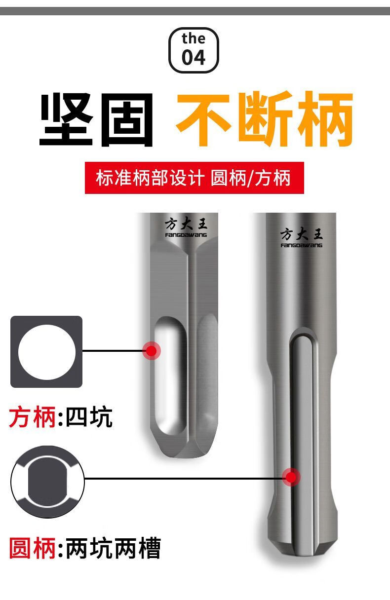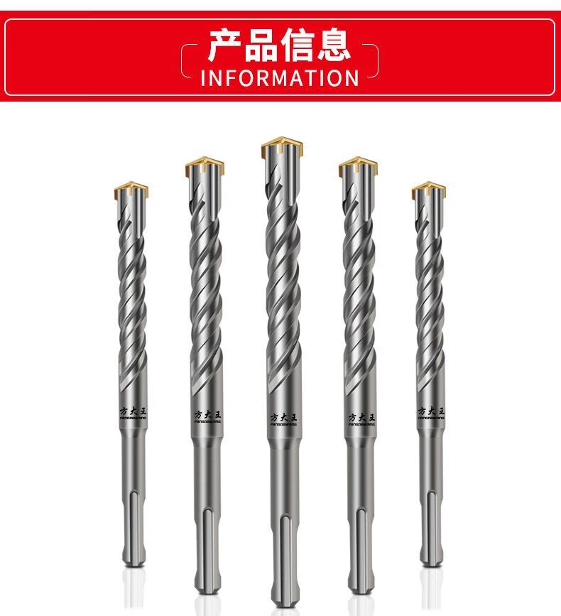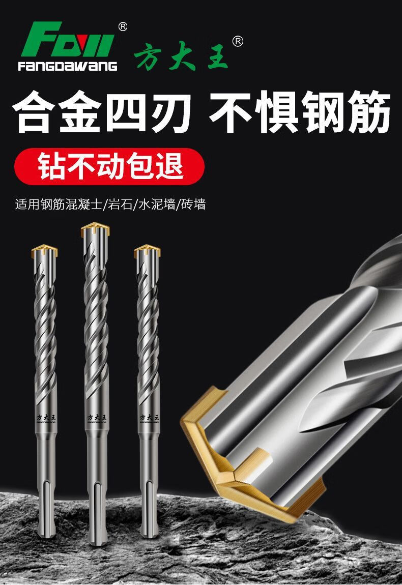 Fang Dawang impact drill square handle round handle concrete slotting electric hammer cross hole punching through the wall extended four-pit rotor wear-resistant square handle Fang Dawang cross four-edged electric hammer drill bit 14x200mm + sandpaper