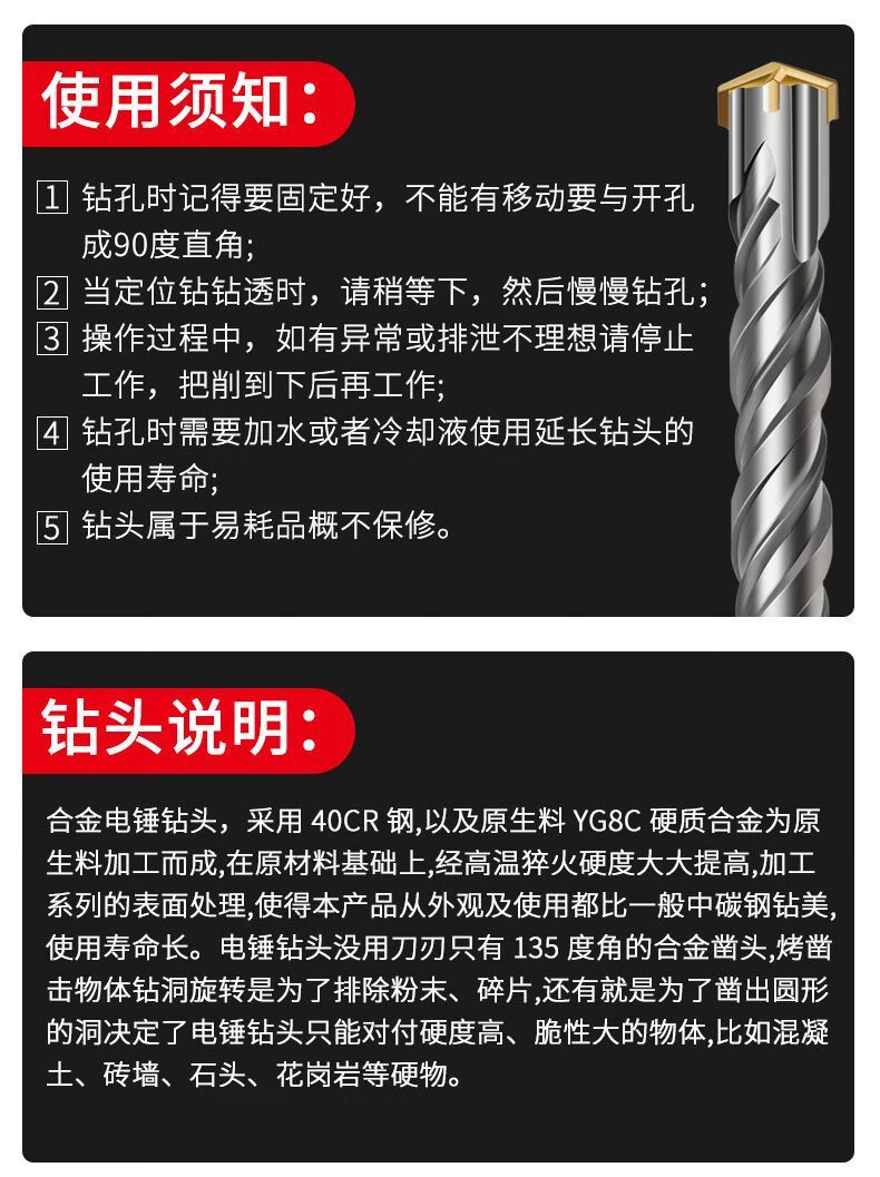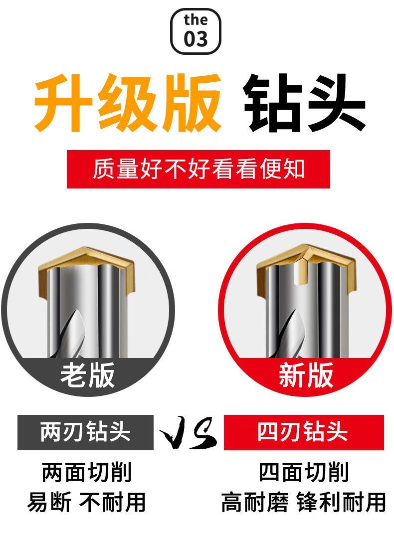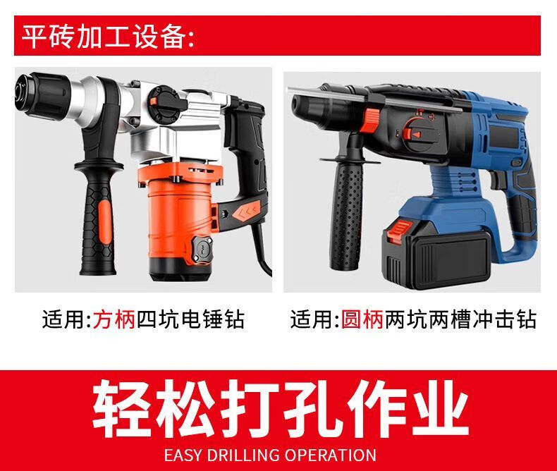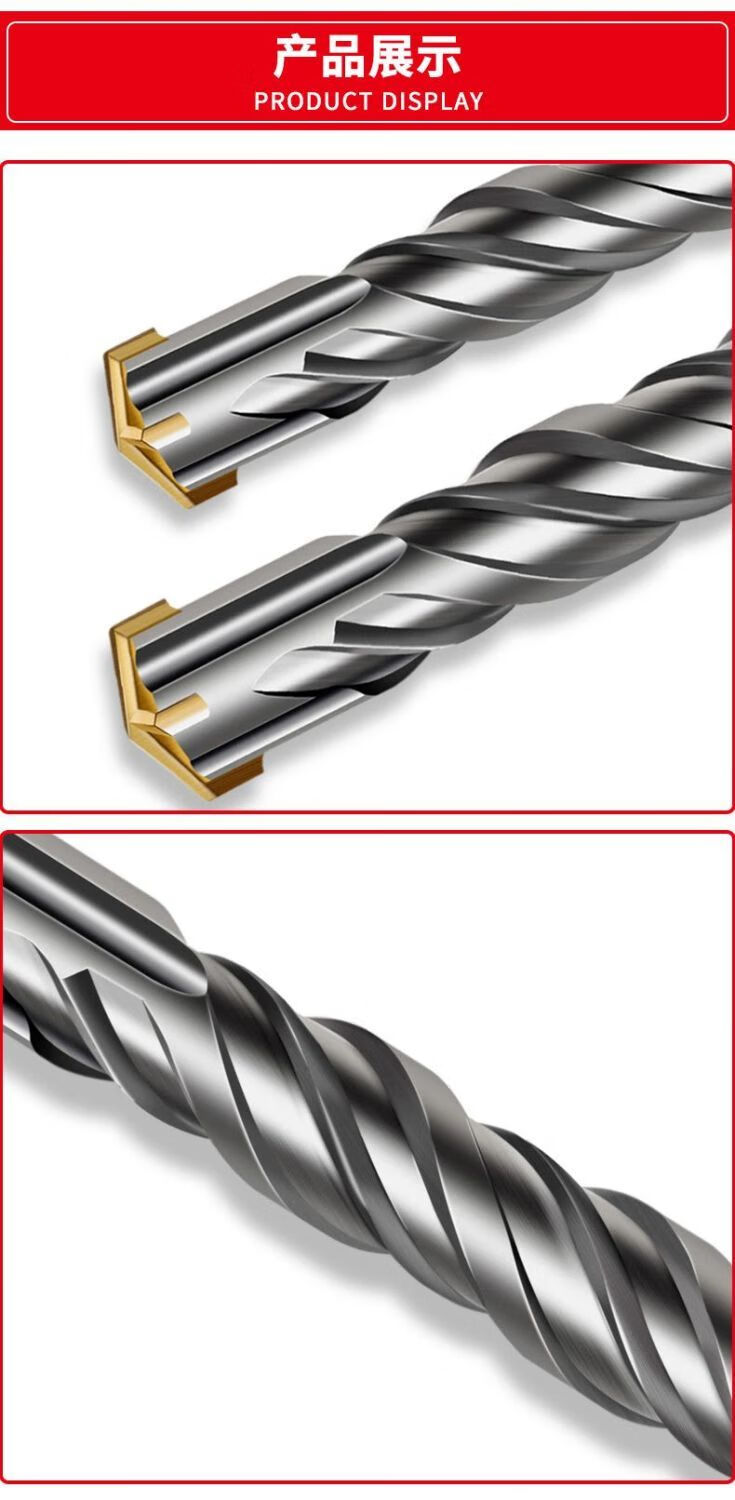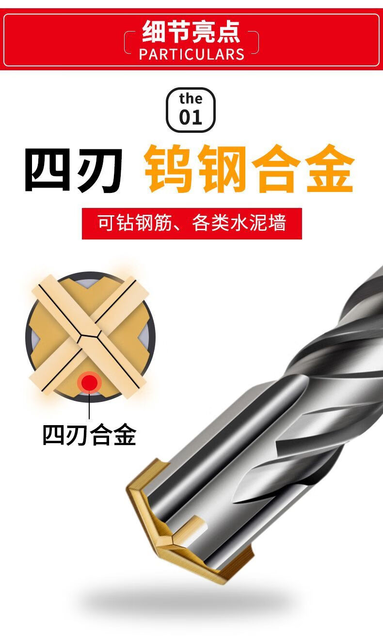 Fang Dawang impact drill square handle round handle concrete slotting electric hammer cross hole punching through the wall extended four-pit rotor wear-resistant square handle Fang Dawang cross four-edged electric hammer drill bit 14x200mm + sandpaper