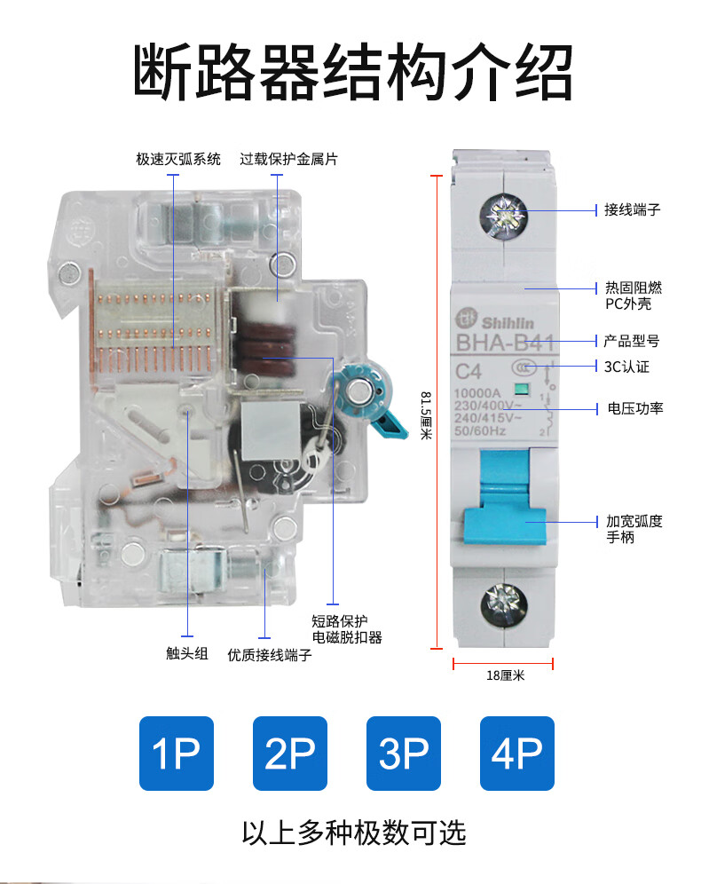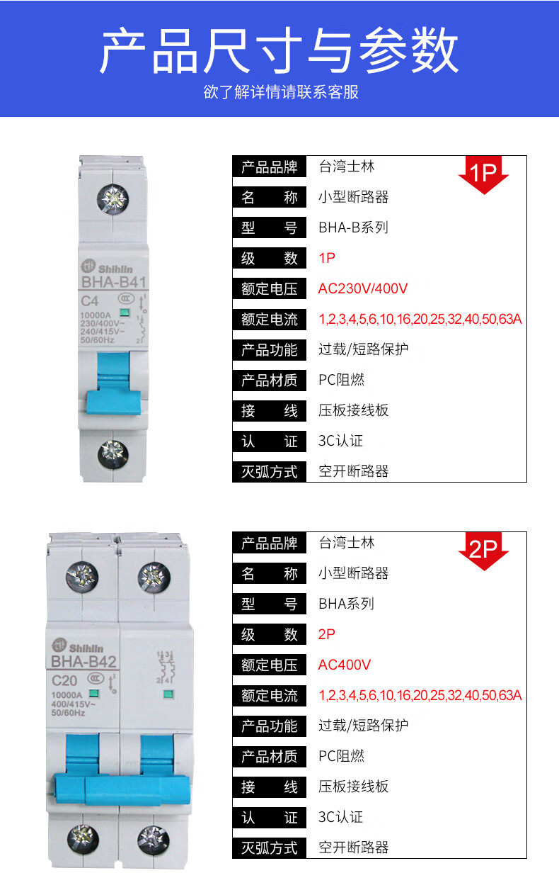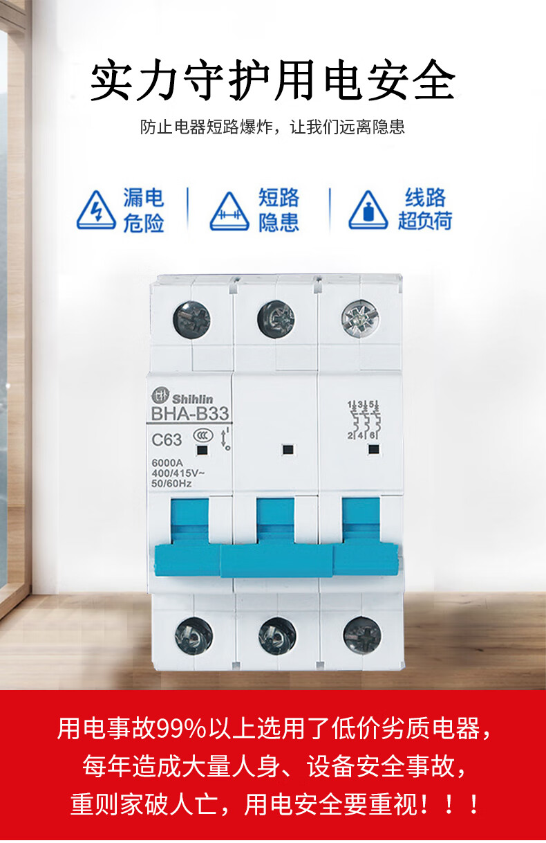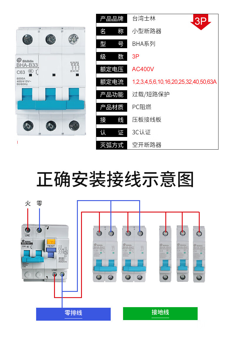 Shihlin small circuit breaker BHA32 C type 6A-63A shihlin air switch original 3P 32A