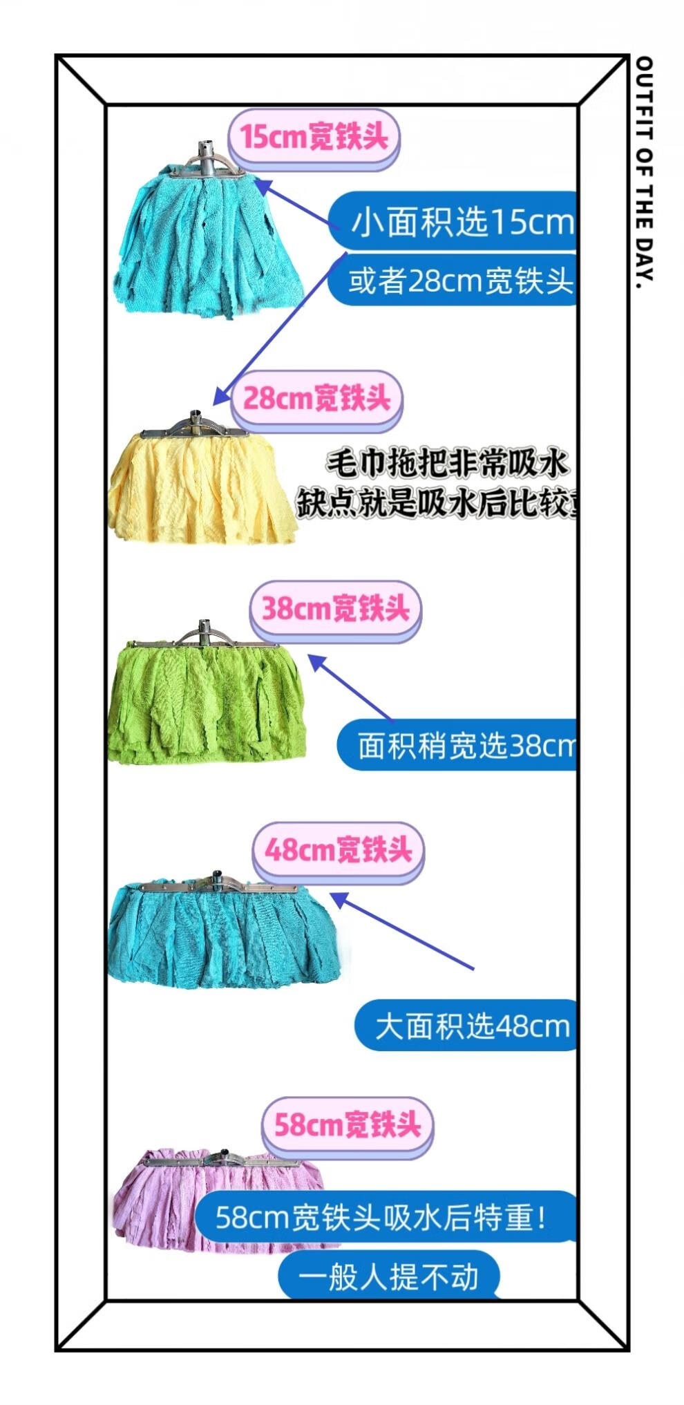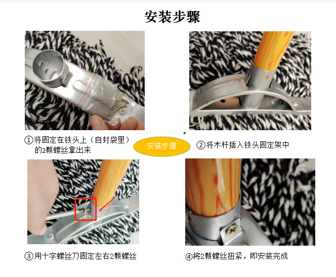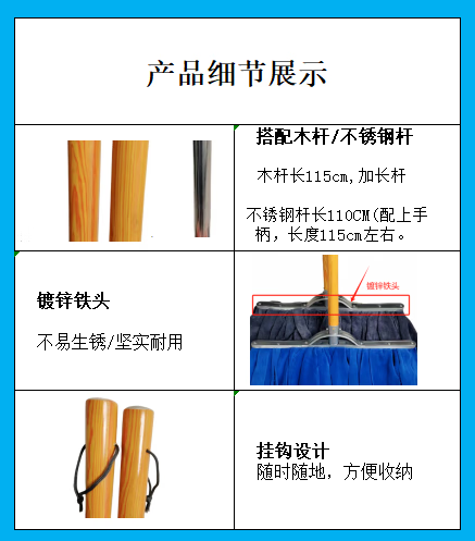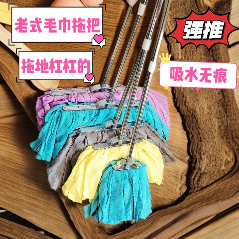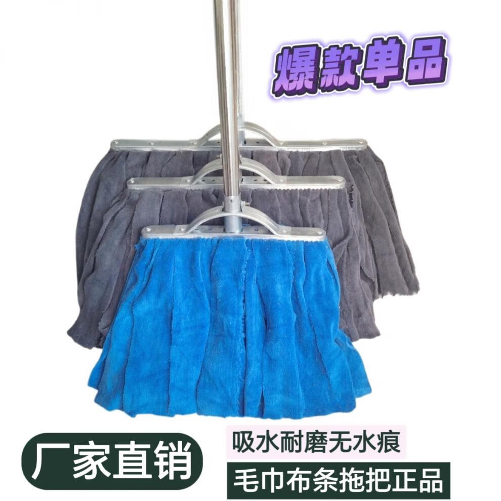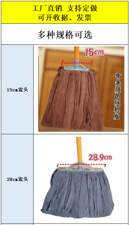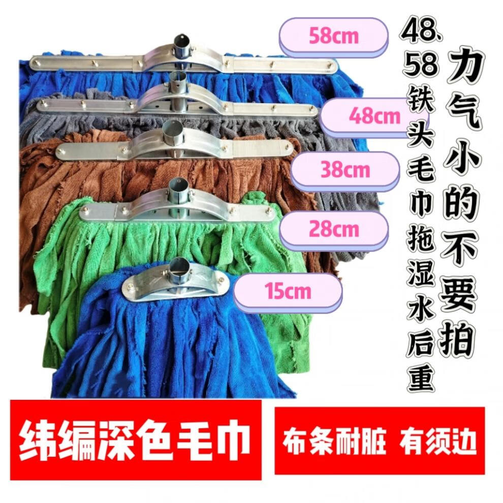 Home shopping mall lint-free mop towel cloth absorbent and traceless old-fashioned durable wide head wet and dry handmade screw type 15cm iron head weft knitted dark towel with a thick wooden pole_cloth strip color
