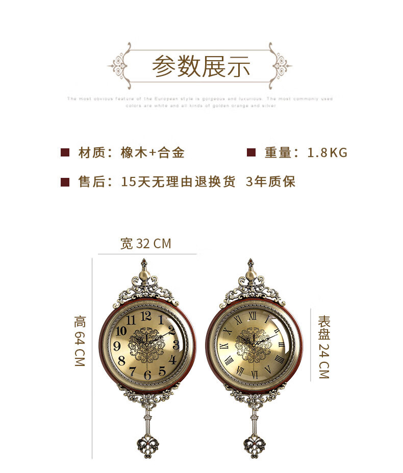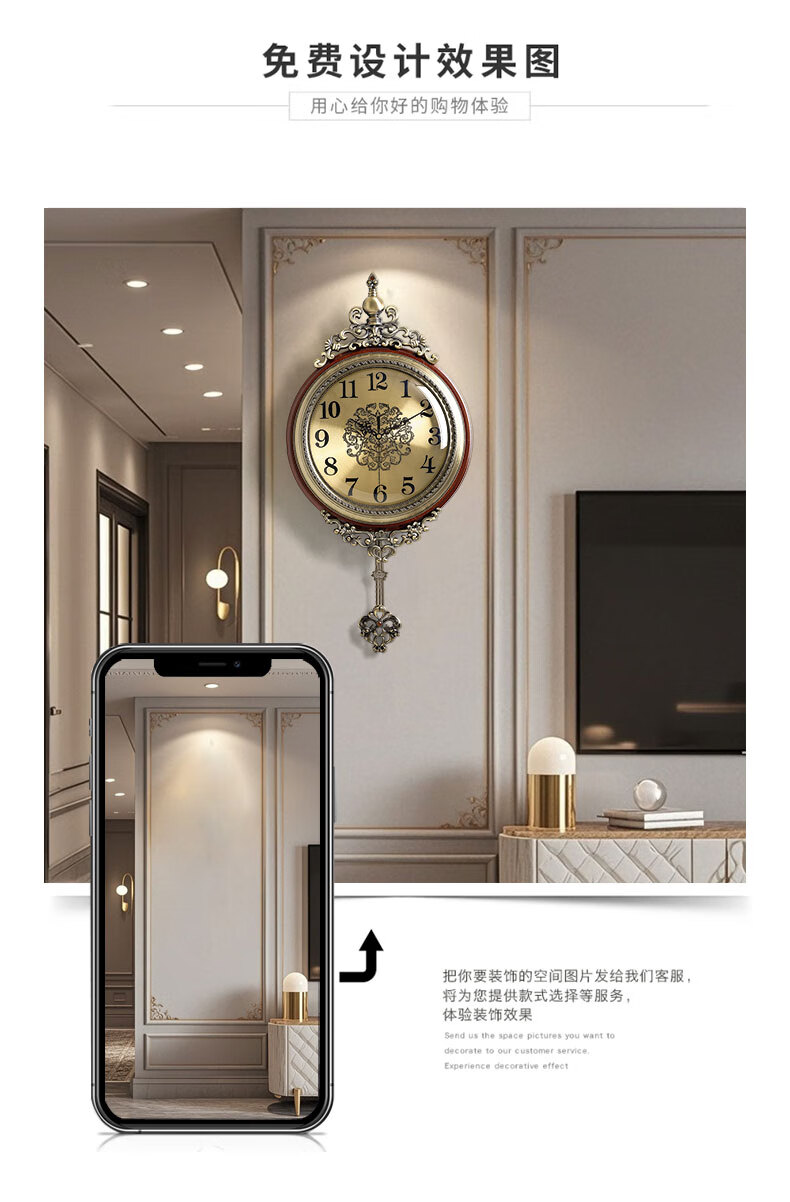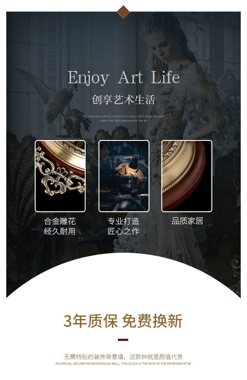 ZUNELL American retro wall clock living room 2026 new light luxury high-end wall clock French European style wall clock high-end Roman numeral style