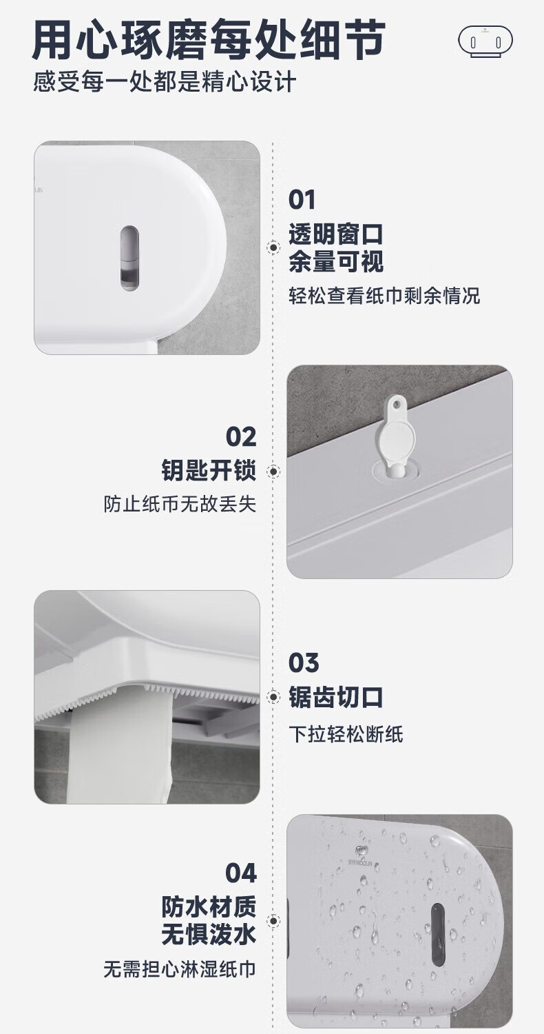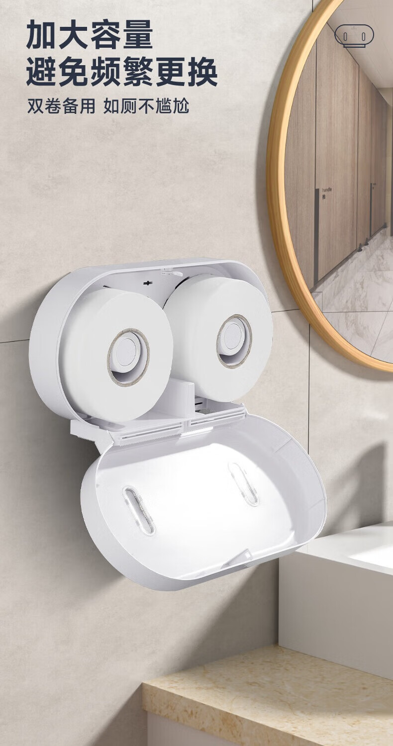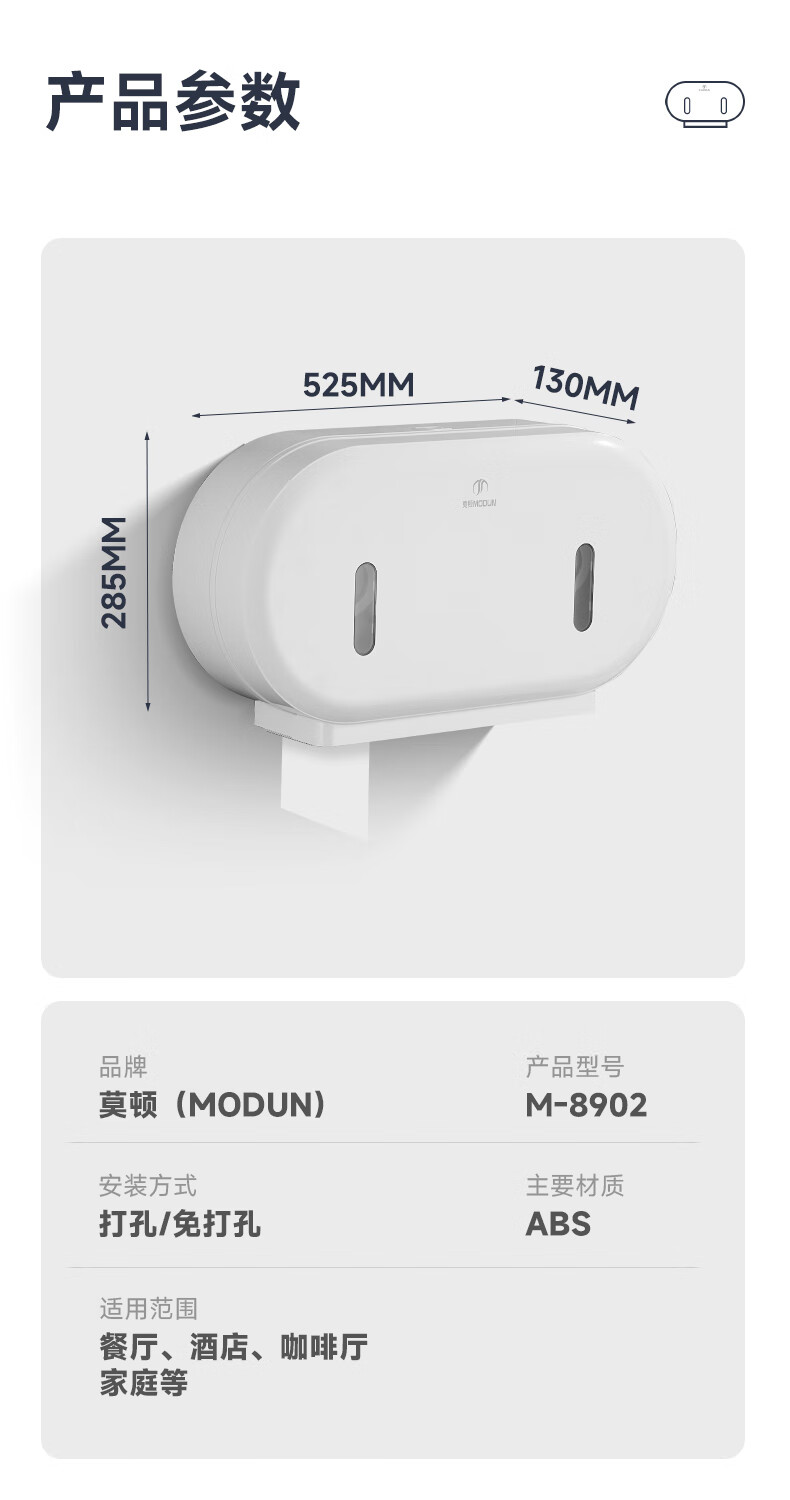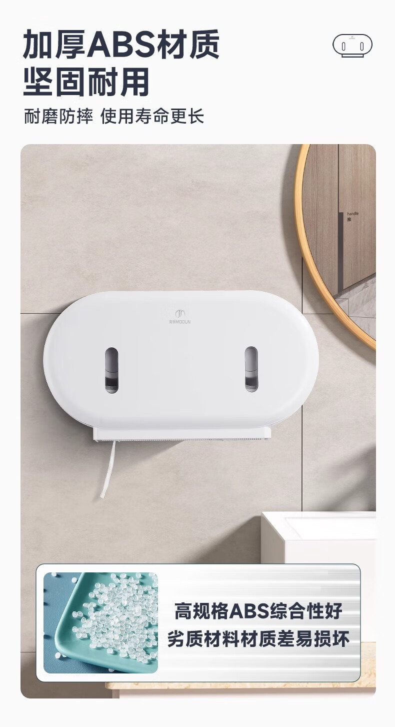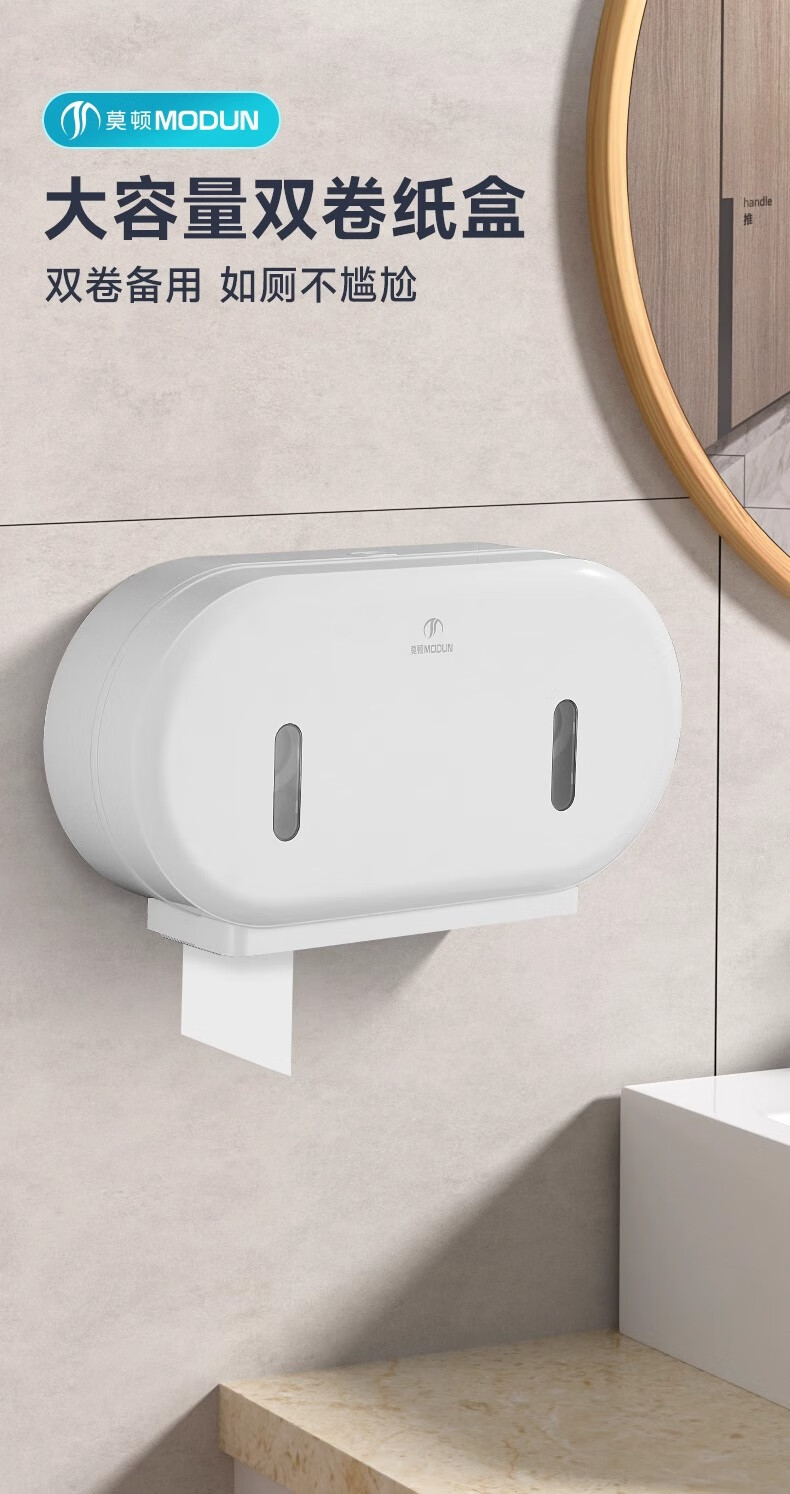 MODUN bathroom large roll paper box wall-mounted double-head toilet tissue box commercial hotel large tray paper towel holder punched matte white punched/nail-free