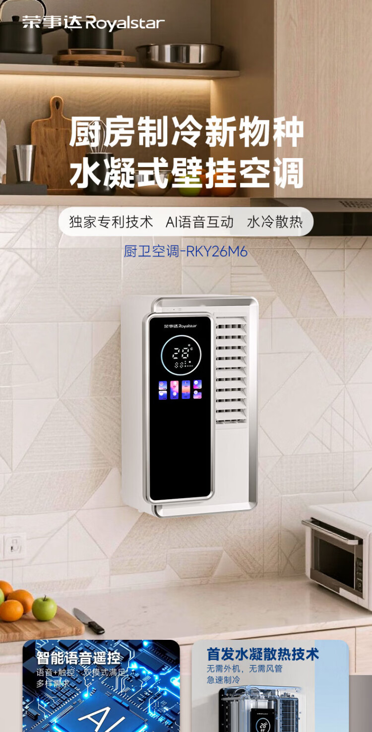 Royalstar kitchen and bathroom air conditioner home kitchen toilet toilet bathroom smart voice APP remote control single cooling wall-mounted desktop all-in-one fast cooling mobile air conditioner without outdoor unit small 1 HP voice model all-in-one fast cooling without outdoor unit
