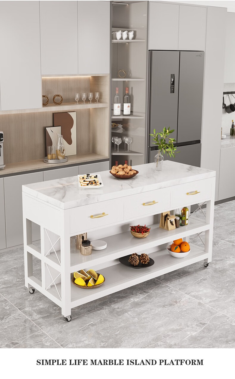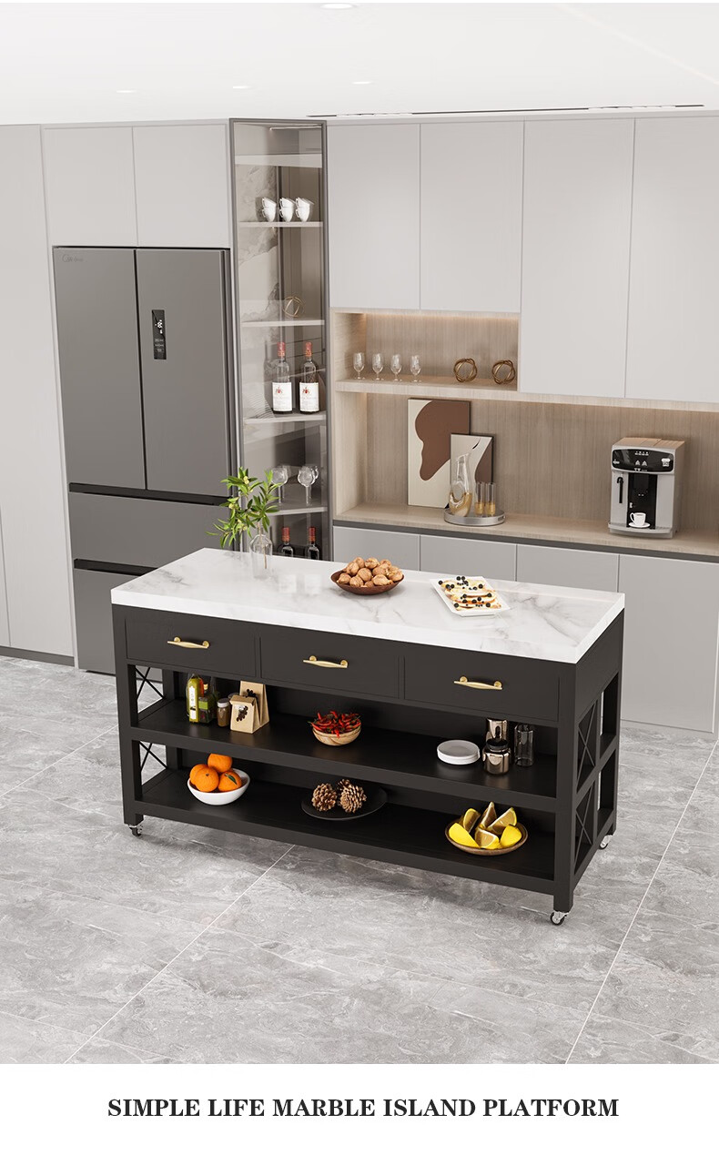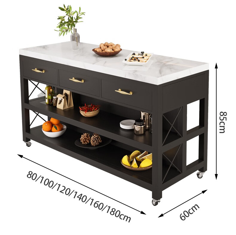 Zhaoran marble island kitchen open dining table removable workbench cooking table storage storage sideboard marble countertop 180*60*85cm four drawers