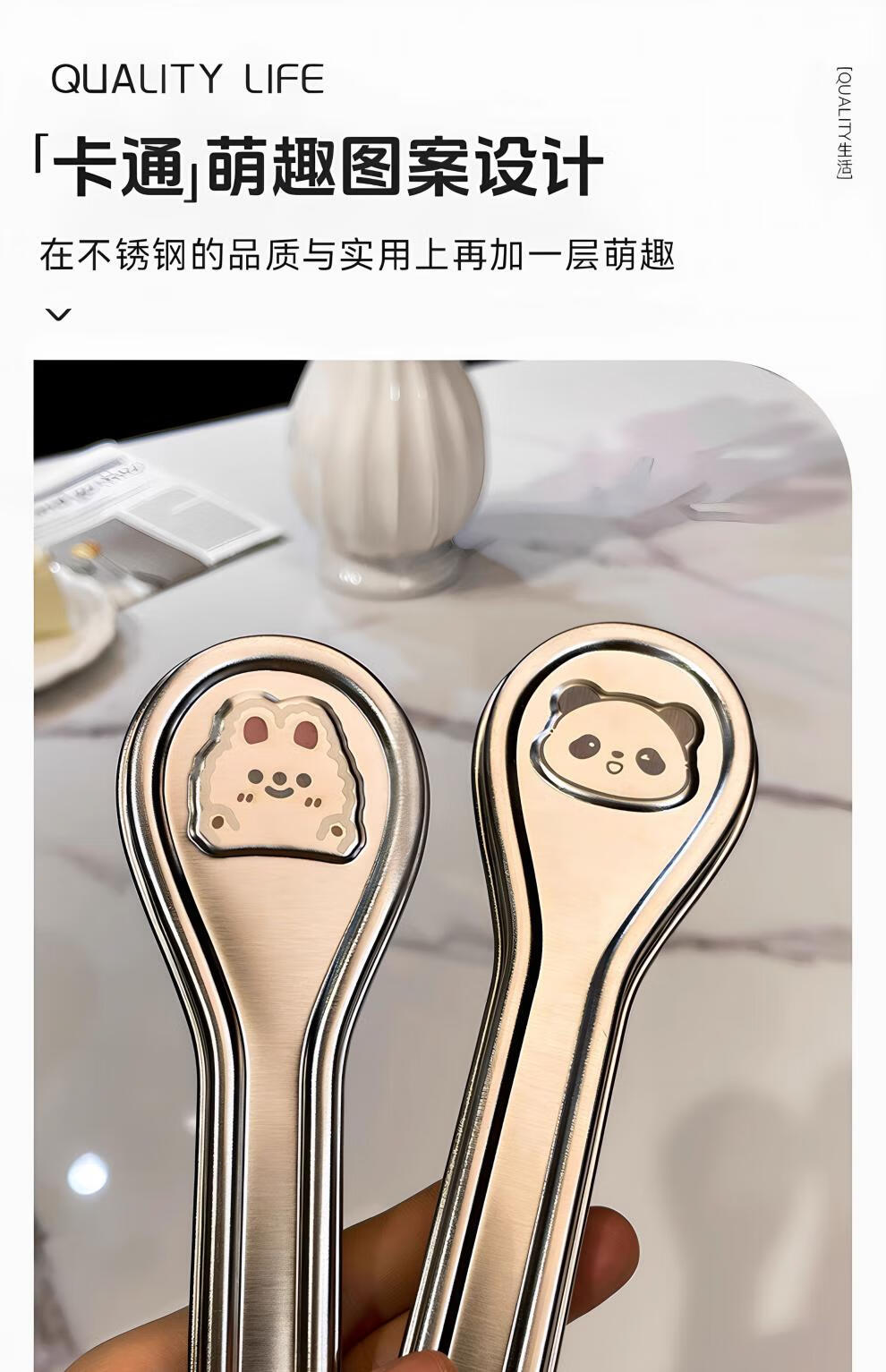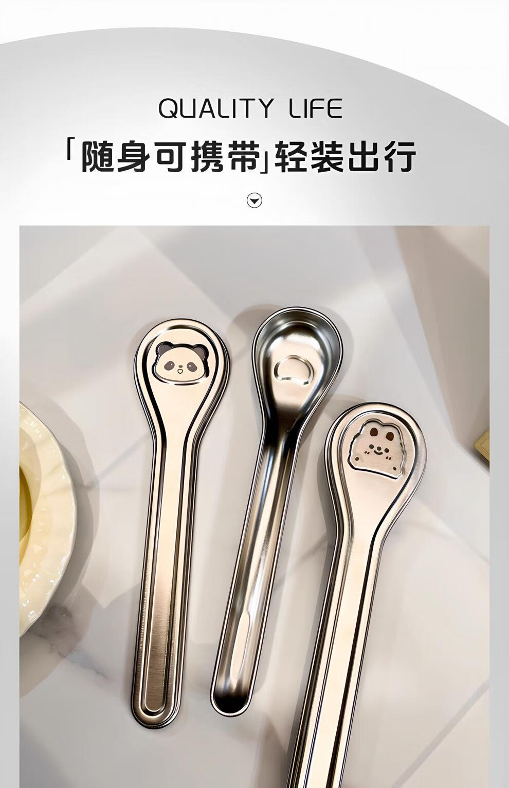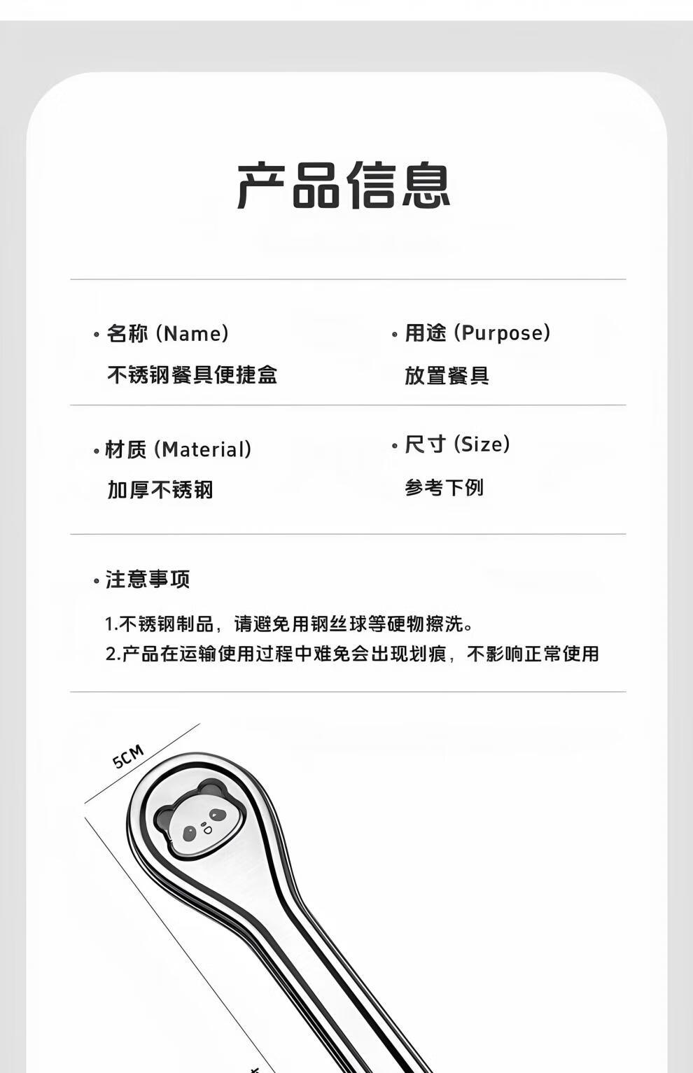 MZXM imported quality 304 stainless steel cutlery box from Japan, portable cutlery, chopsticks and spoons, personal box, chopsticks and spoon collection 04 Panda cutlery storage box (without cutlery) - single pack