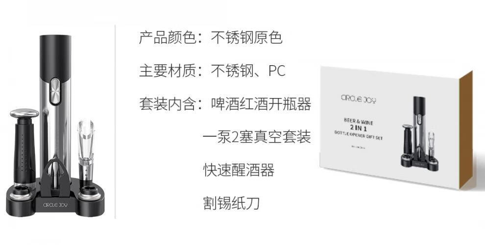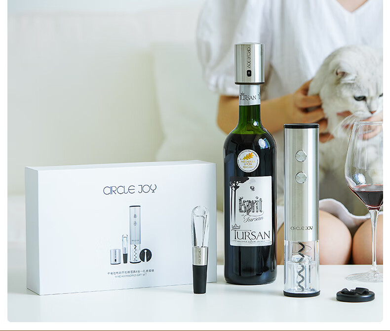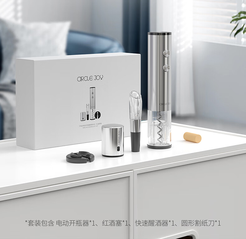 Circle Joy Electric Wine Bottle Opener Home Rechargeable Wine Opener Fully Automatic Wine Bottle Opener Stainless Steel Bottle Opener Gift Box Set 4-in-1 Gift Box Set