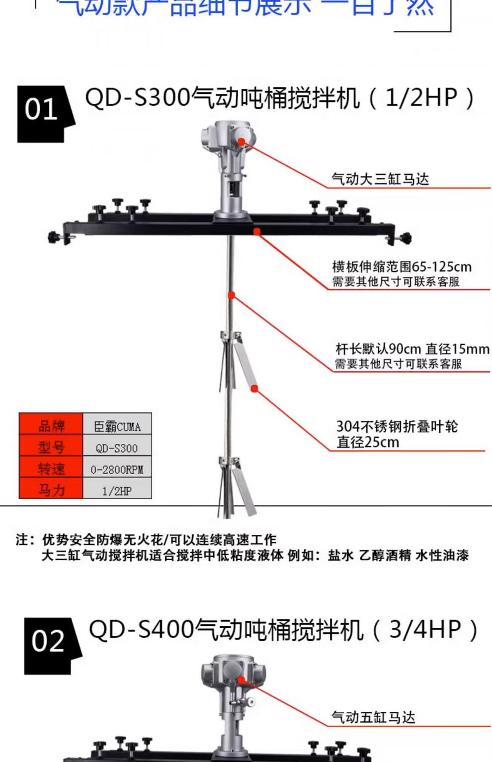 FHJQBIBC ton barrel pneumatic mixer horizontal plate electric mixer stirring paint chemical explosion-proof disperser rod paddle The following 3 models are permanent magnet brushless motors industrial grade