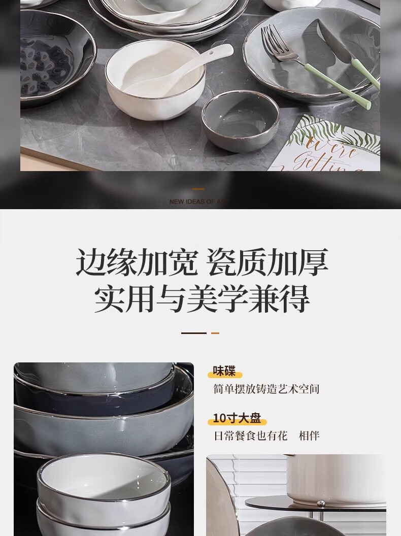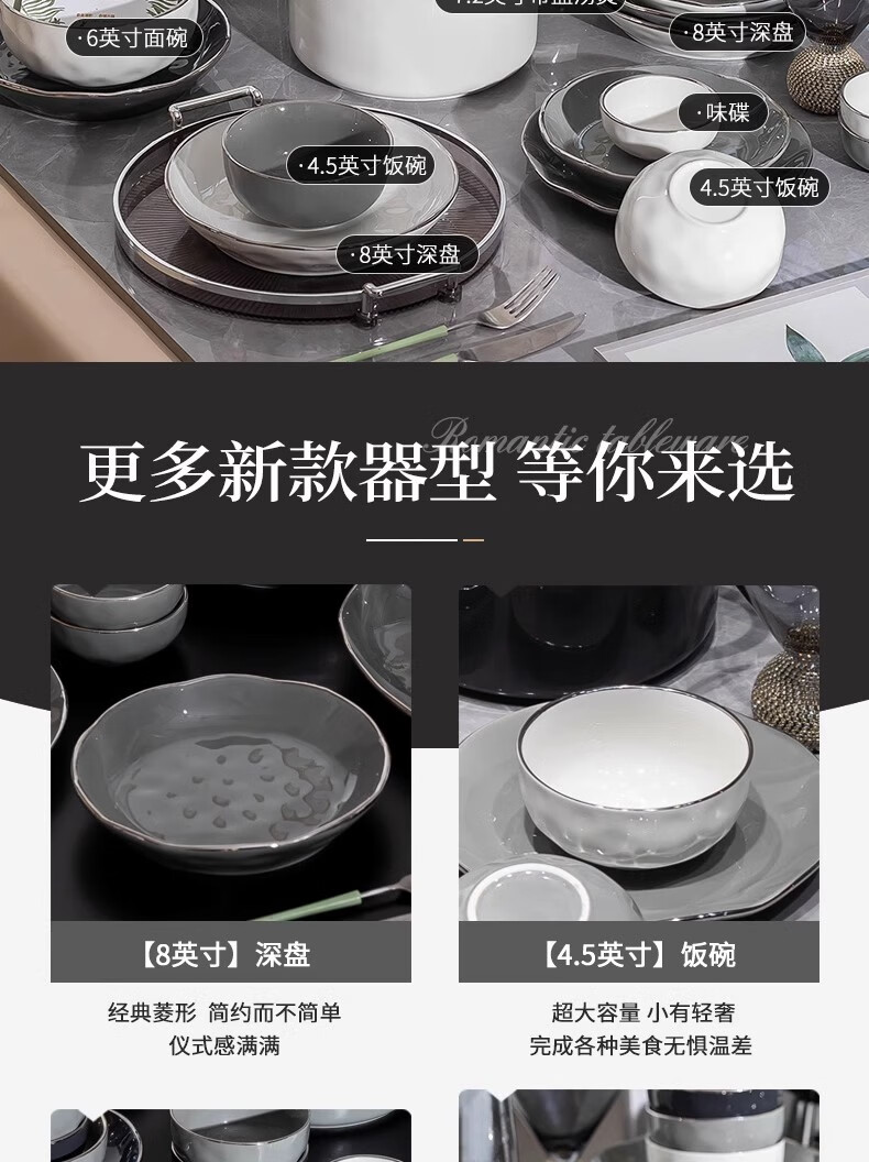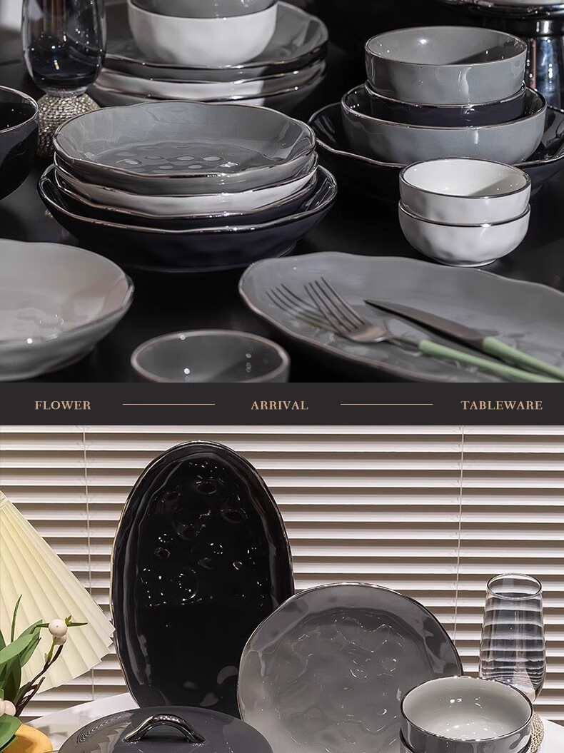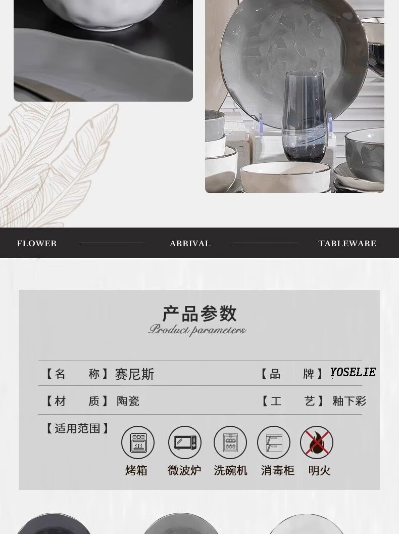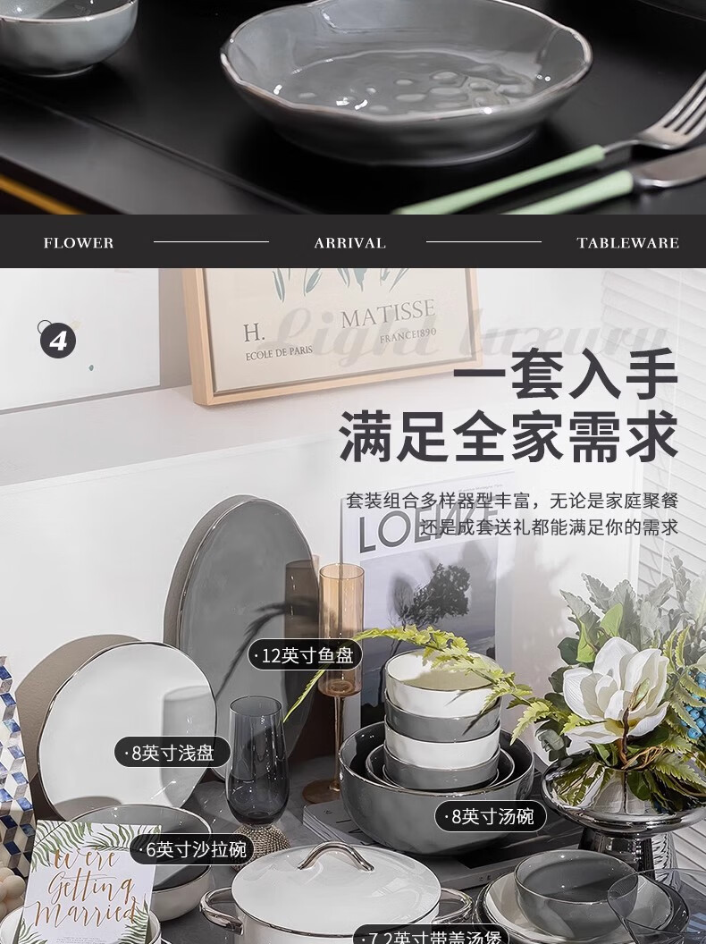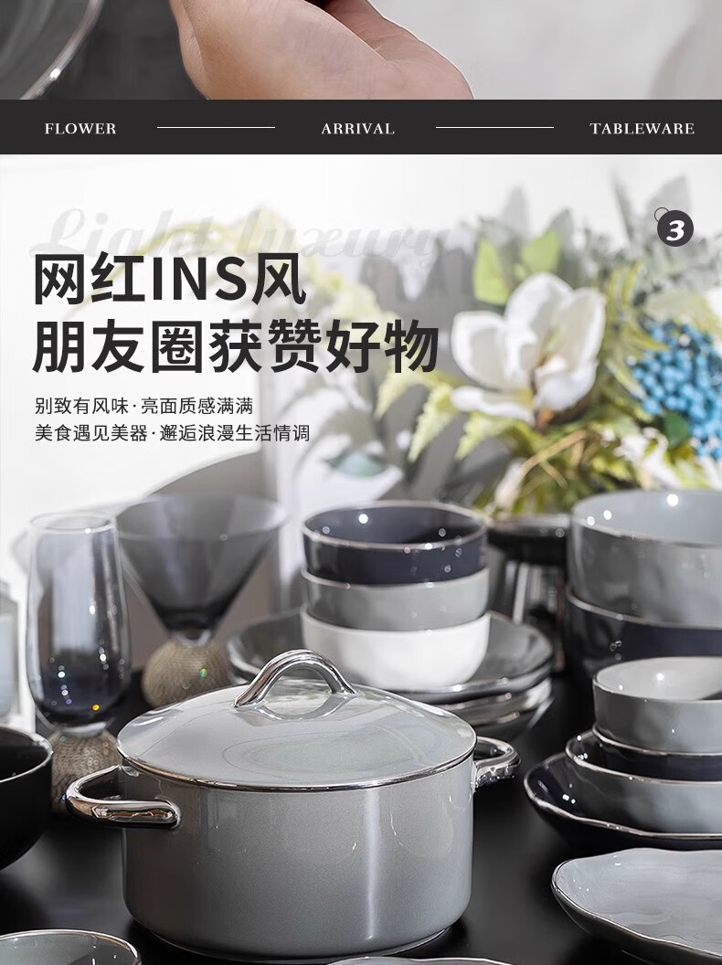 Hongye YOSELIE dish set household pure white light luxury high-end housewarming bowls and chopsticks high-end porcelain tableware Senis three-color 12-person meal with soup pot 58-piece set