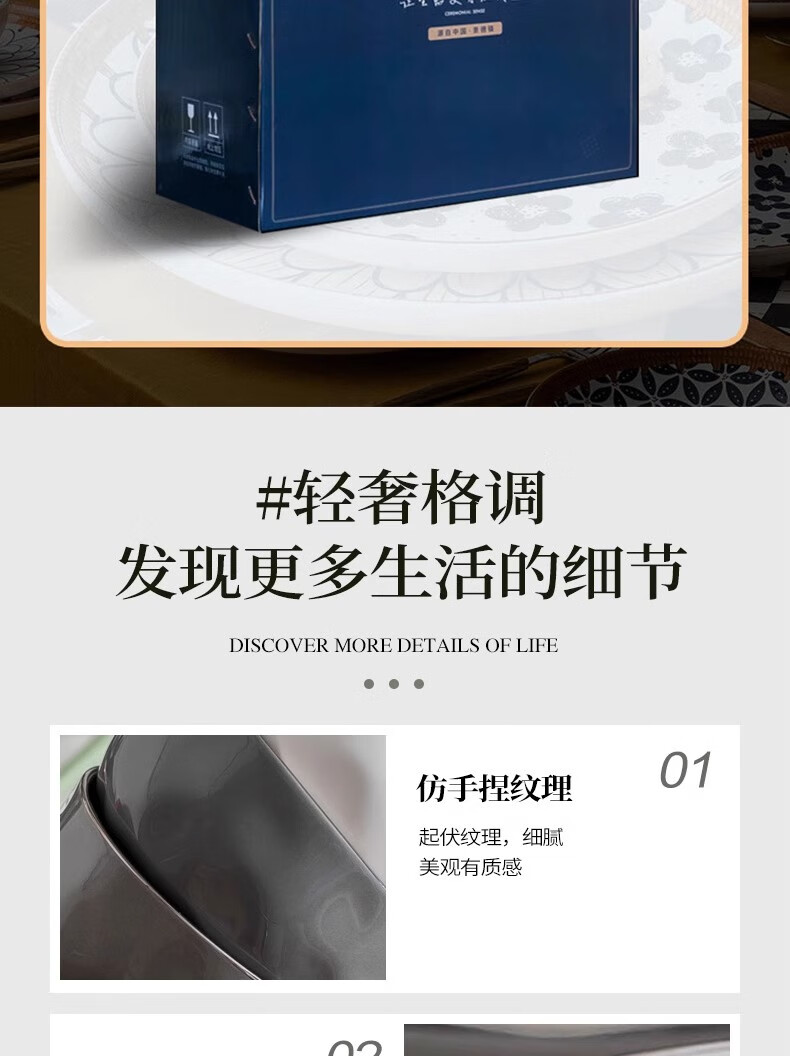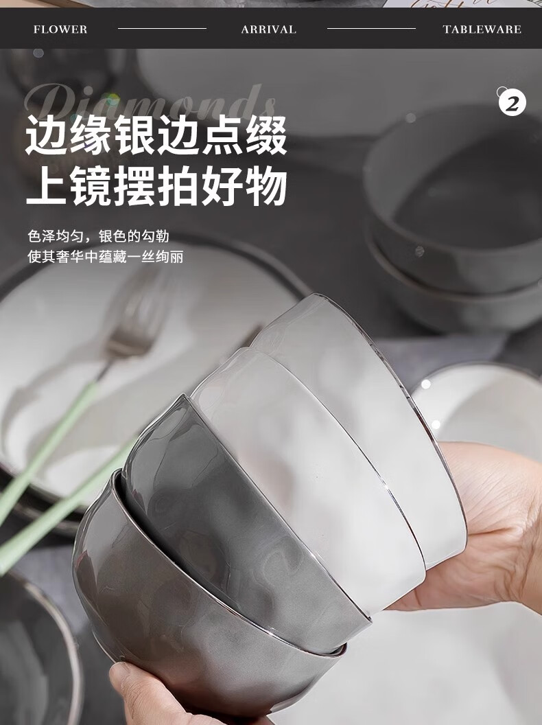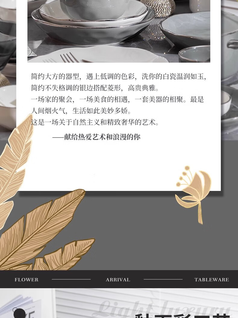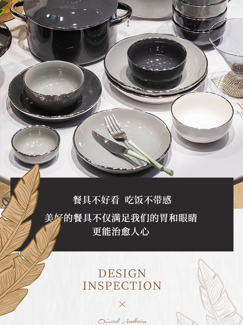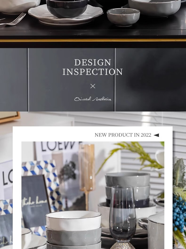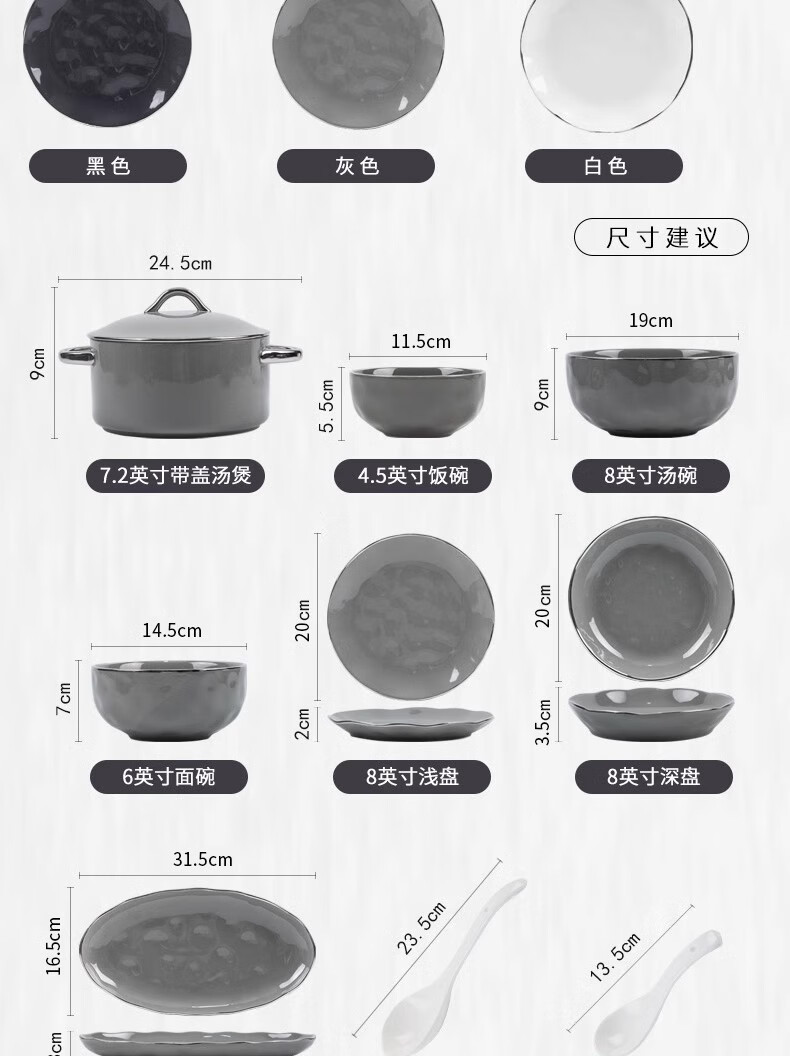 Hongye YOSELIE dish set household pure white light luxury high-end housewarming bowls and chopsticks high-end porcelain tableware Senis three-color 12-person meal with soup pot 58-piece set