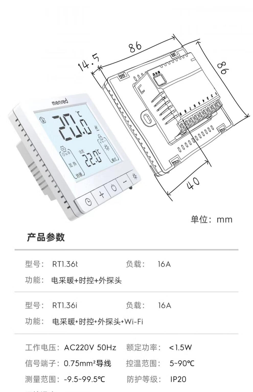 Menred.36t electric floor heating electric heating thermostat WIFI mobile phone APP steam room white RT1.36t 16A time control + external probe (electric heating