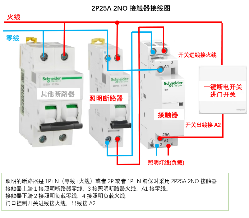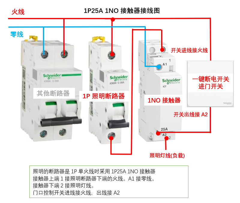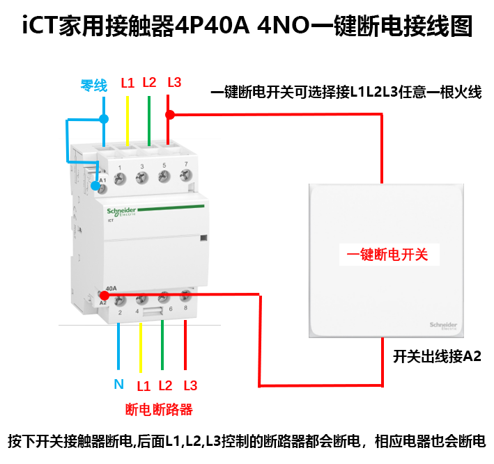 Schneider A9 circuit breaker iCT household contactor one-click power off France 1P2P4P25A 2NO normally open 4P63A4NOA9C20864