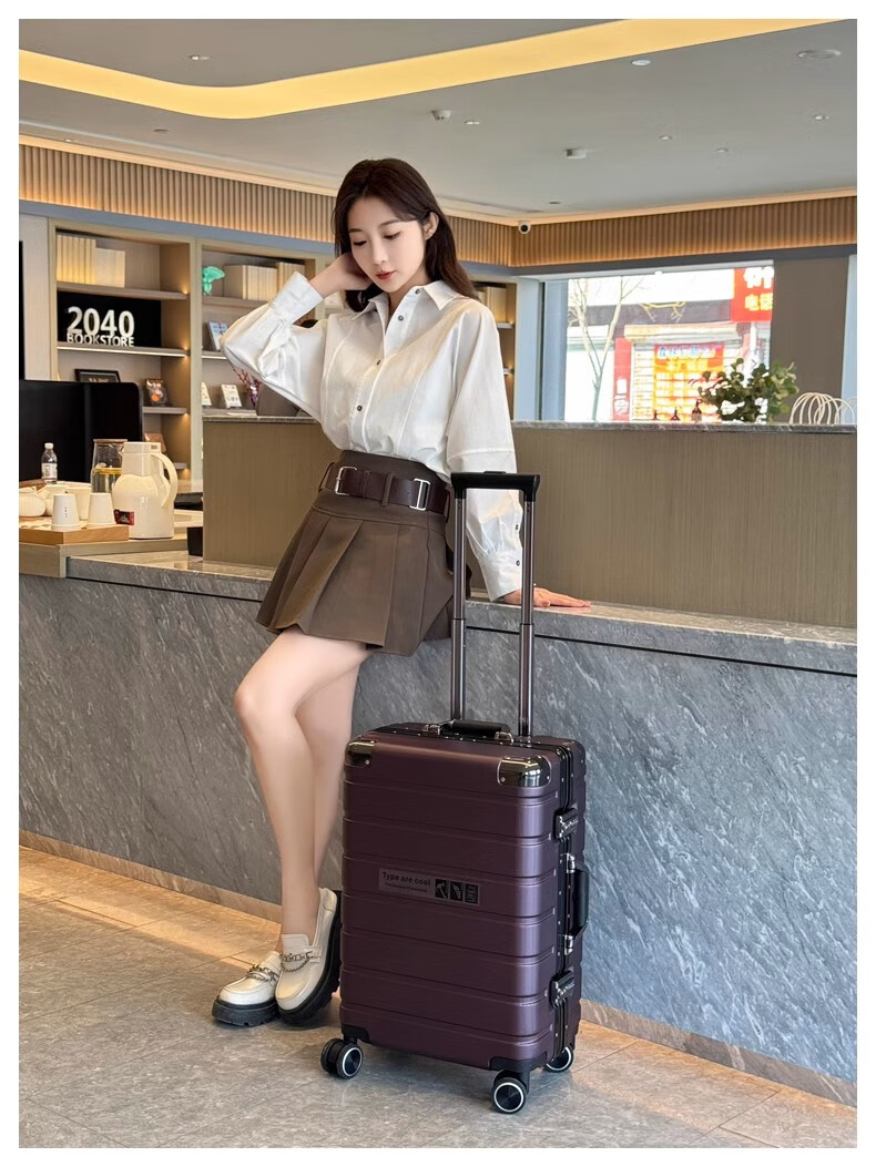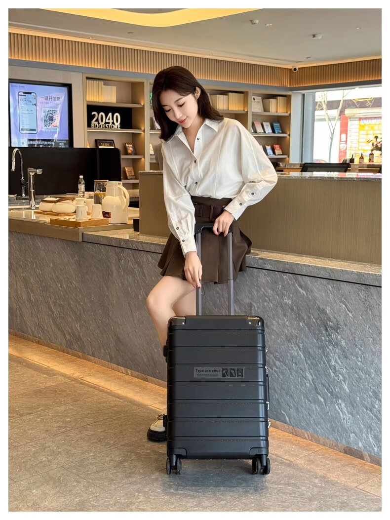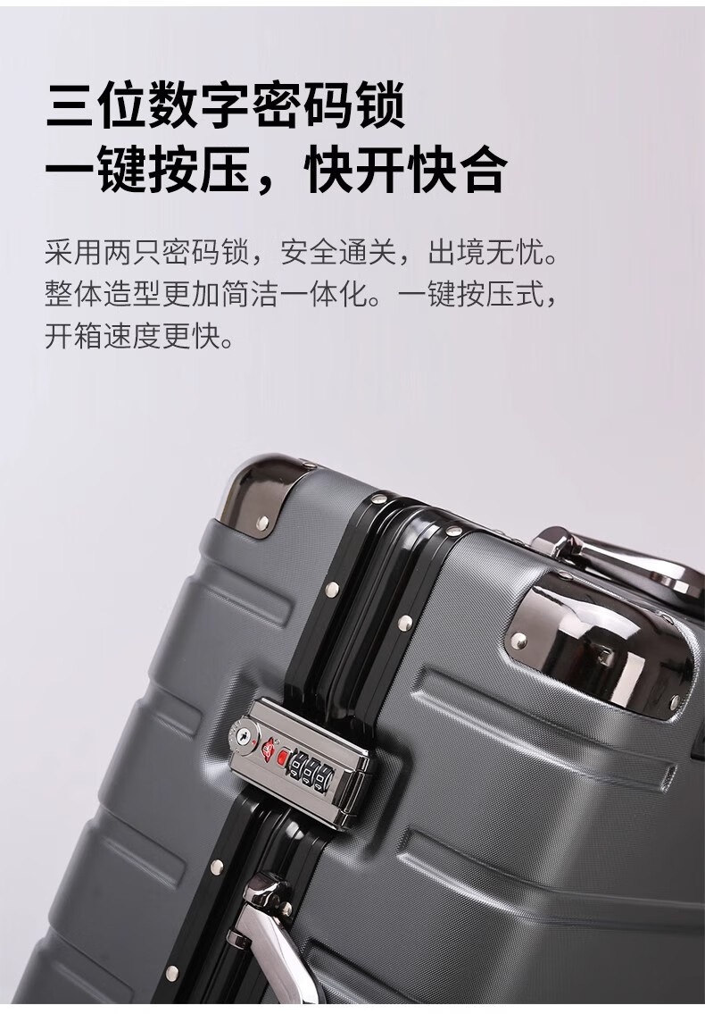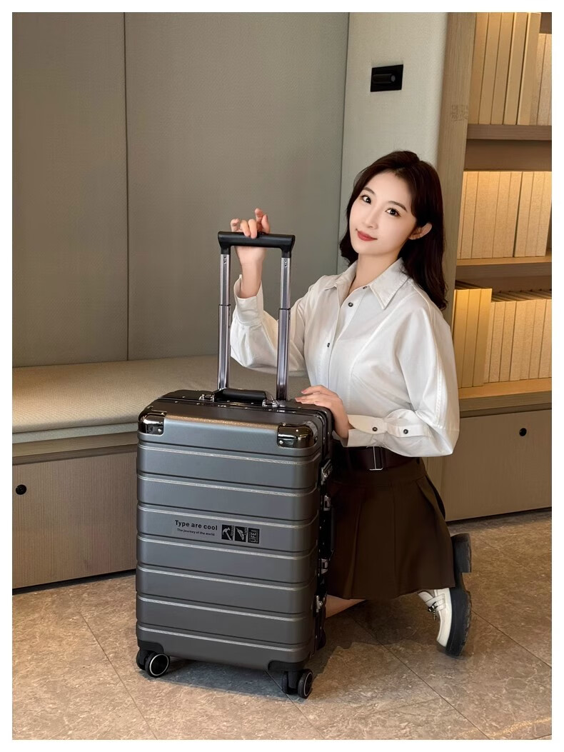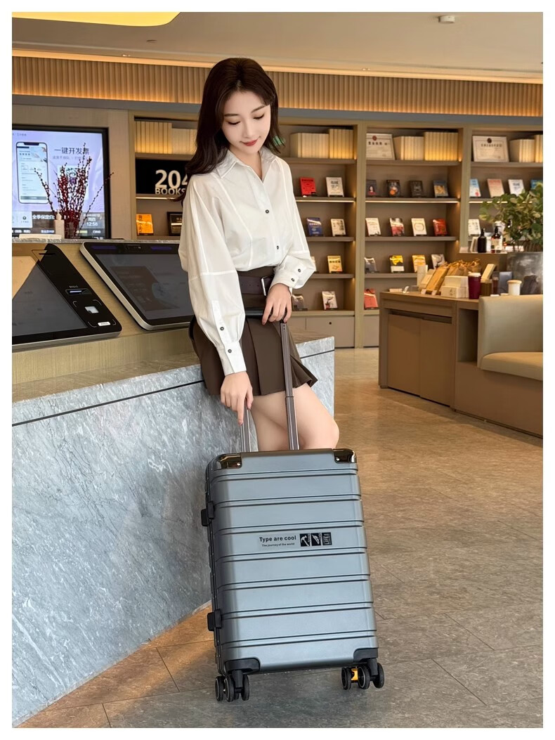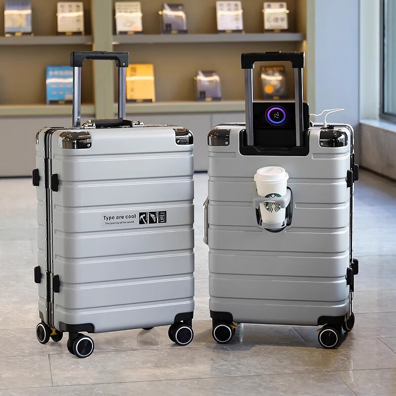 JCZS German quality 2025 new universal wheel boarding suitcase small password trolley case student suitcase lake blue noble aluminum frame + dry and wet separation inside + cup holder + charging port 20 inches