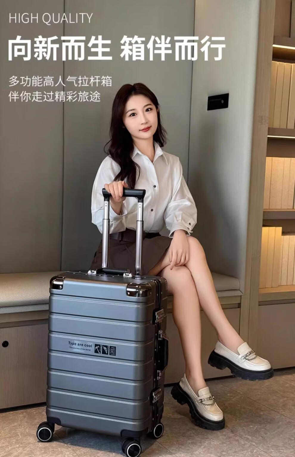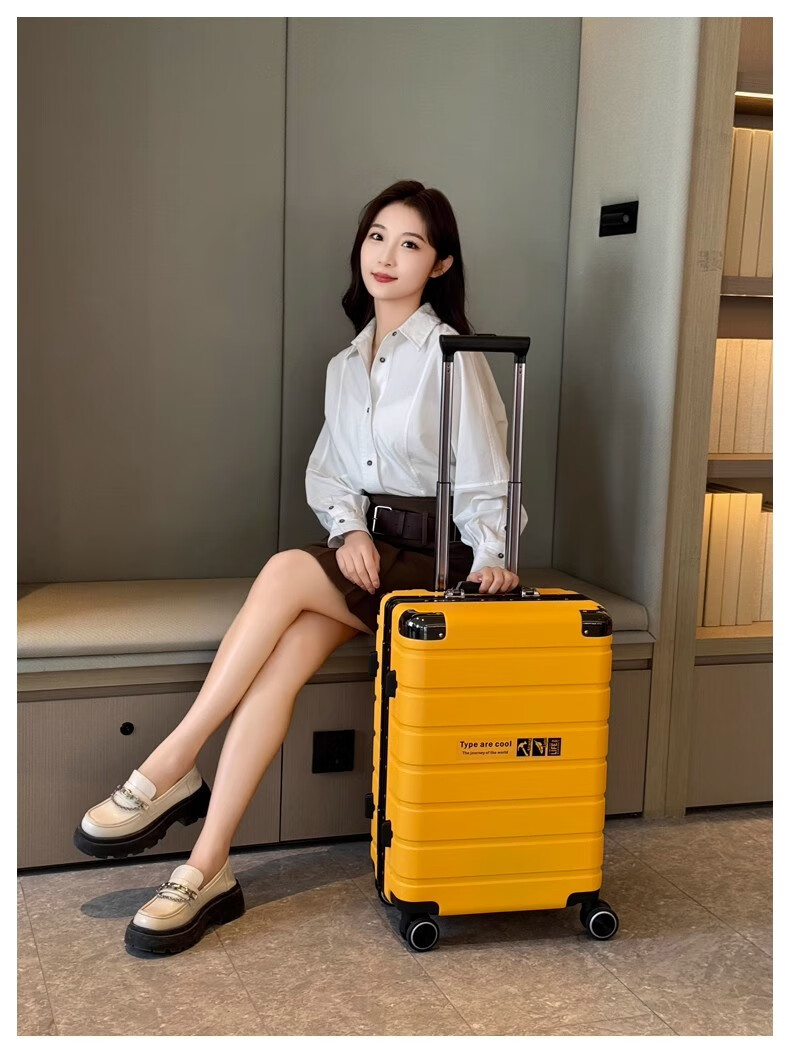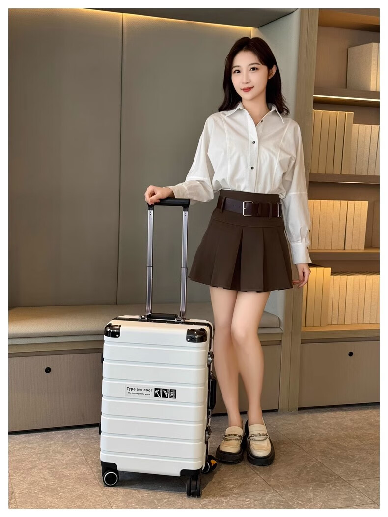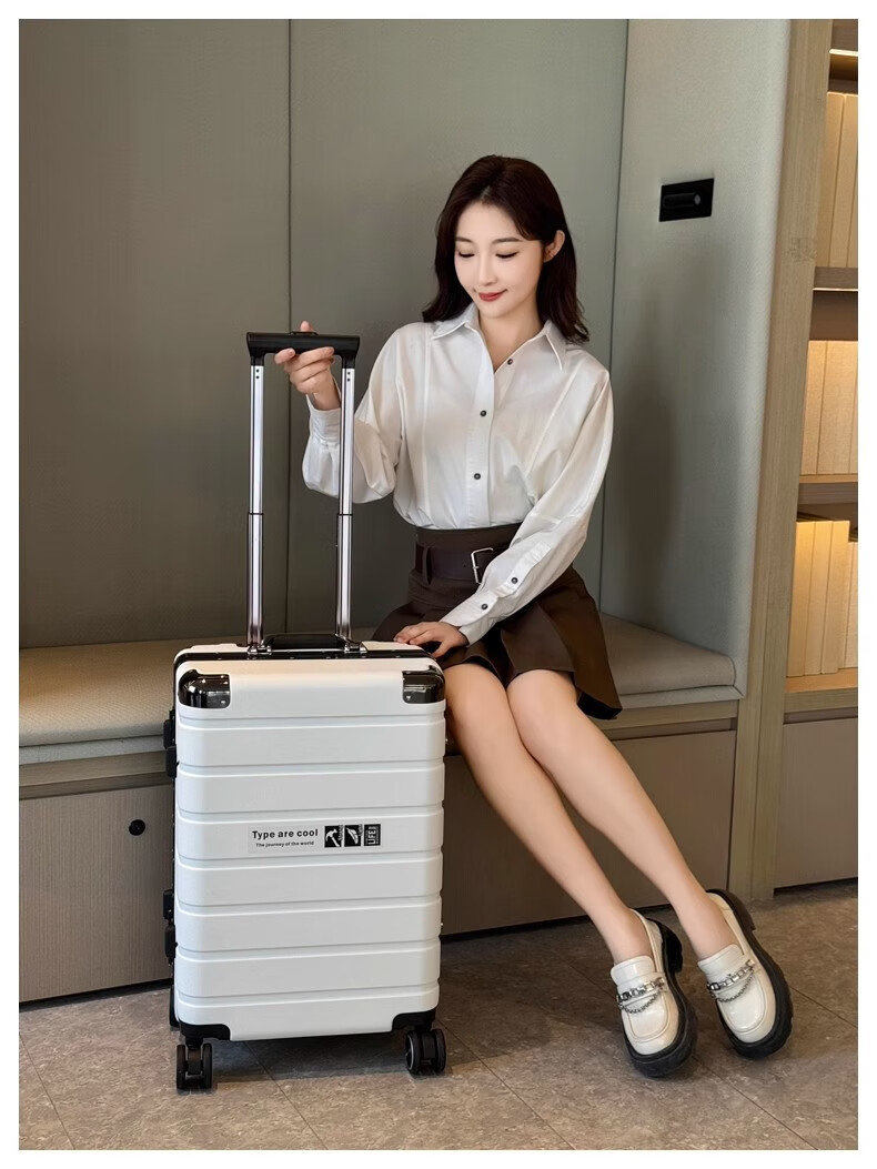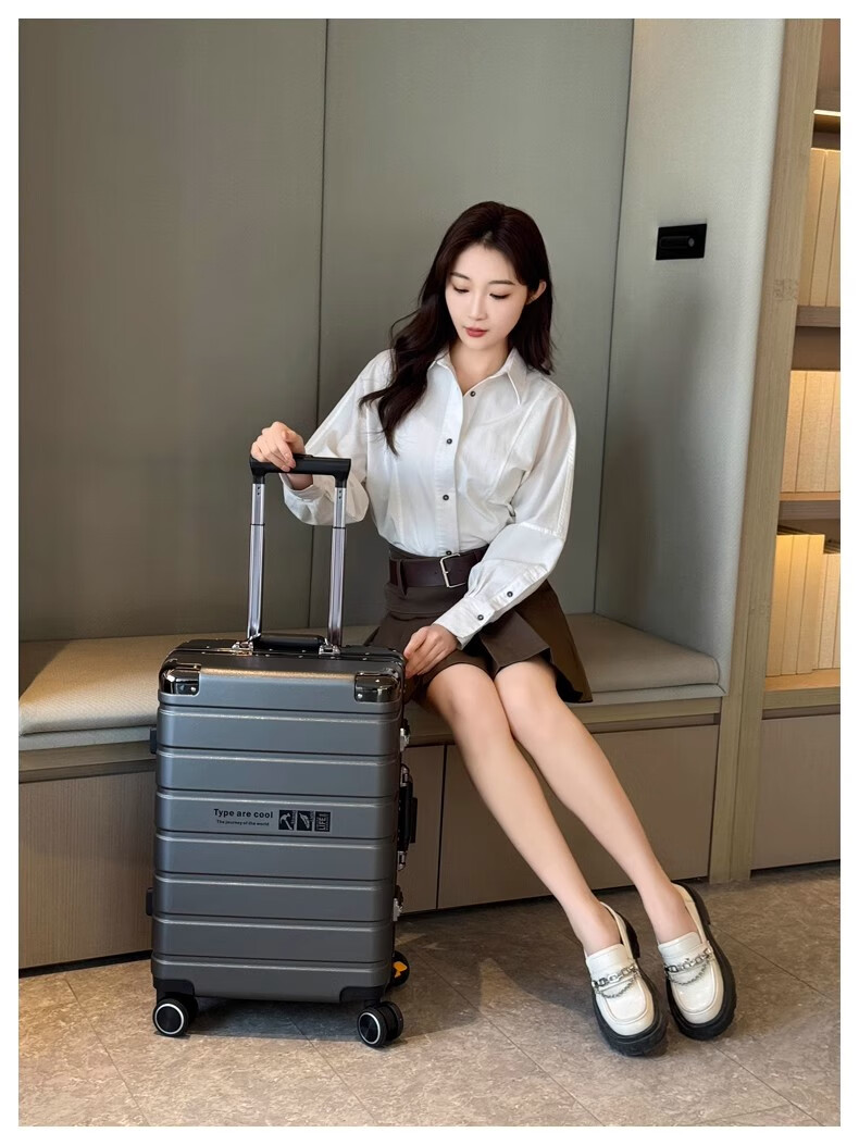 JCZS German quality 2025 new universal wheel boarding suitcase small password trolley case student suitcase lake blue noble aluminum frame + dry and wet separation inside + cup holder + charging port 20 inches
