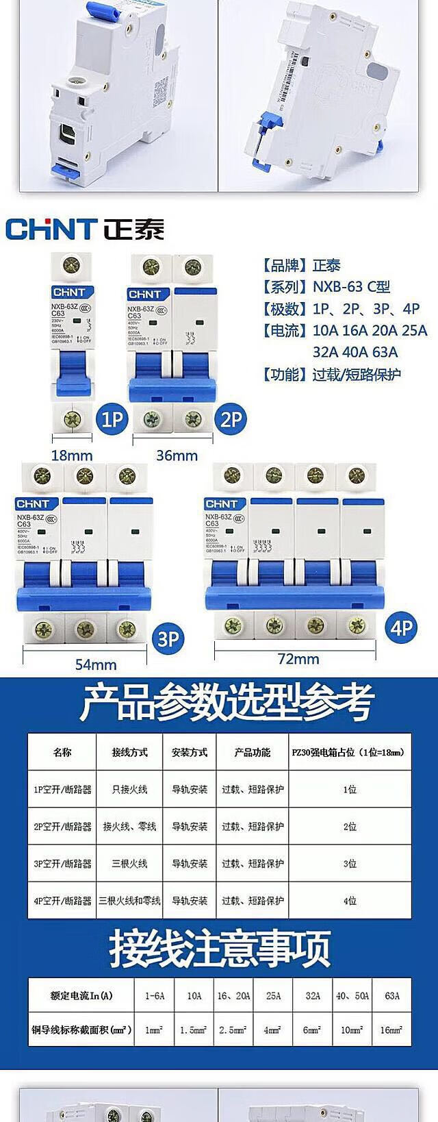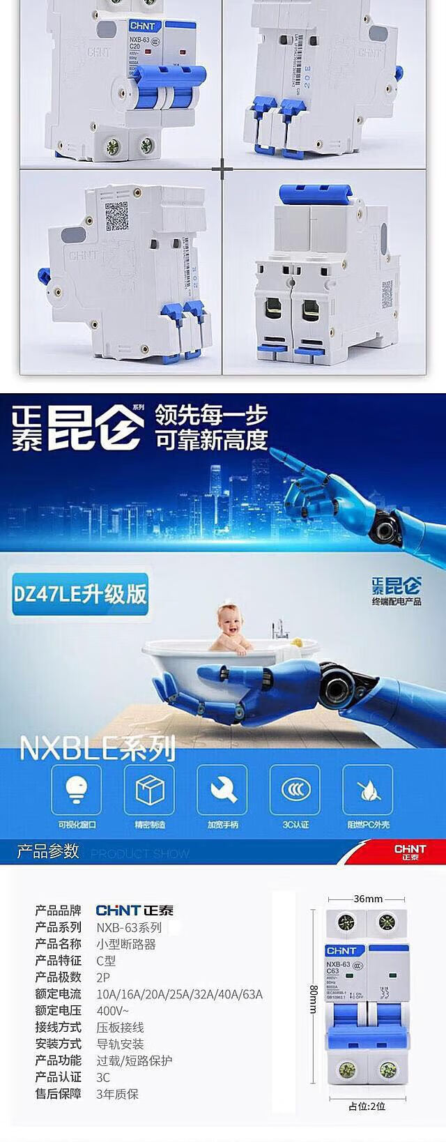 Chint NXB air switch DZ47 small 4P air switch 32A switch 63A main switch household 3P circuit breaker 100A 4p 10A
