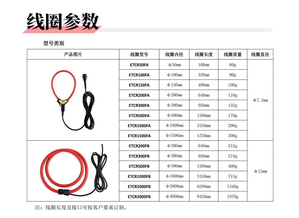 Flexible coil current sensor Rogowski coil current transformer current detector AC smart ETCR1000FB (1000mm)