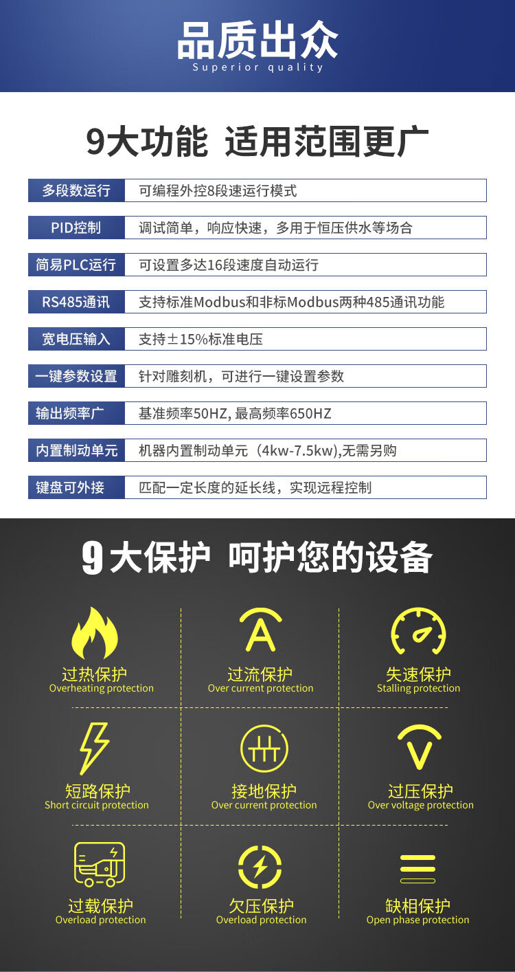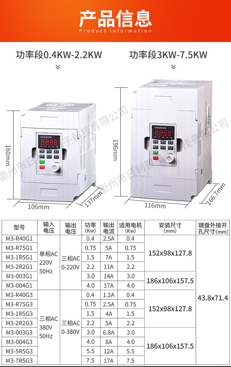 Yue Changsheng inverter three-phase 380v/single-phase 220v fan water pump motor speed regulation 0.75/1.5/2. 0.4KW220VM3 universal type