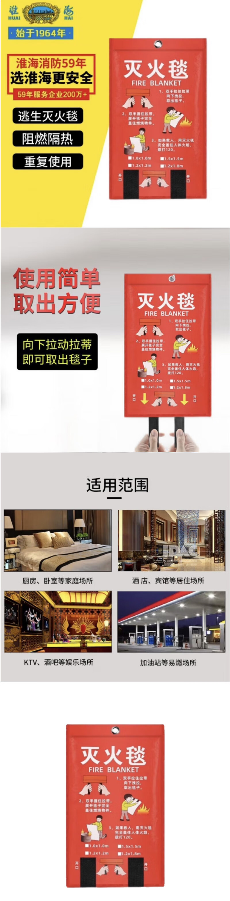 Huaihai fire blanket 1*1M piece
