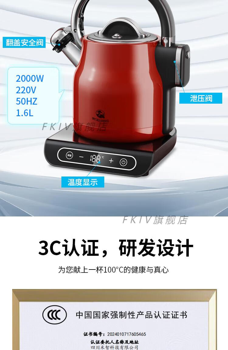 FKIV cow-horse Tibetan plateau electric kettle smart electric pressure kettle electric kettle household plateau area 100 degree kettle black 1600ml