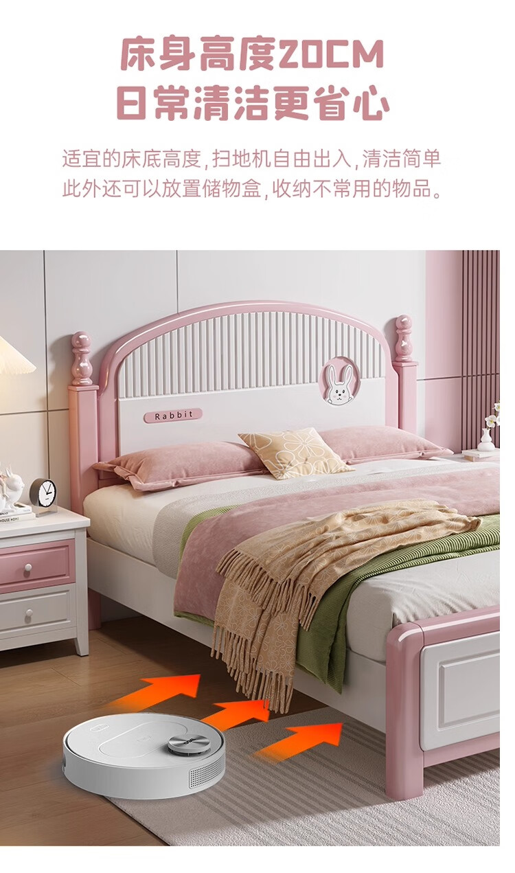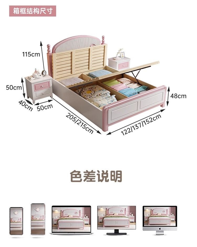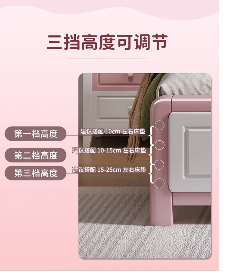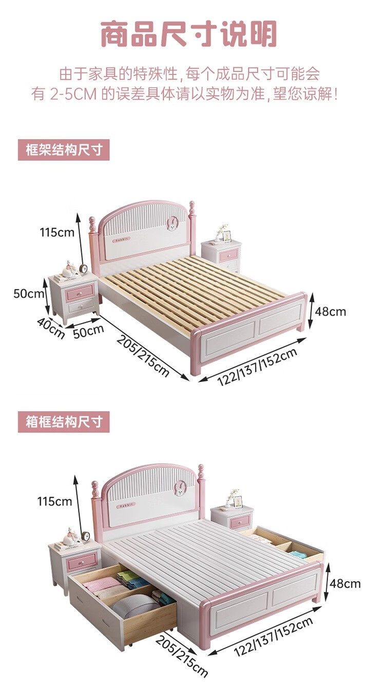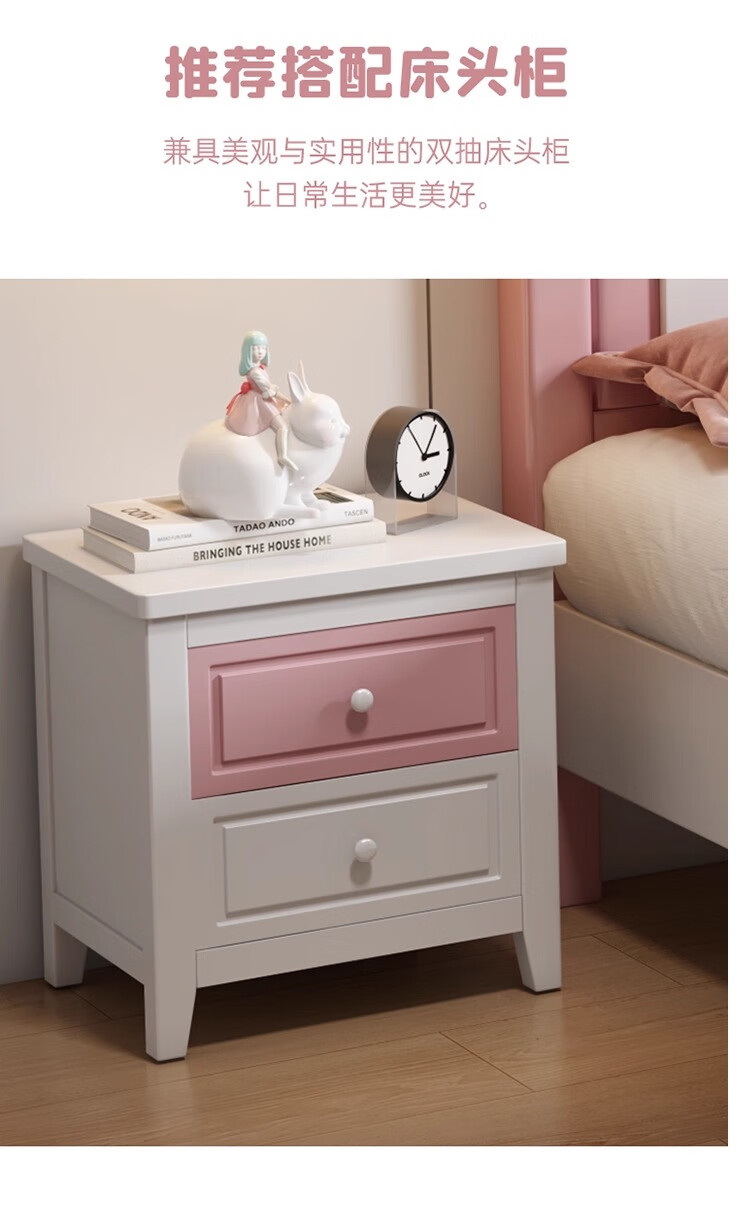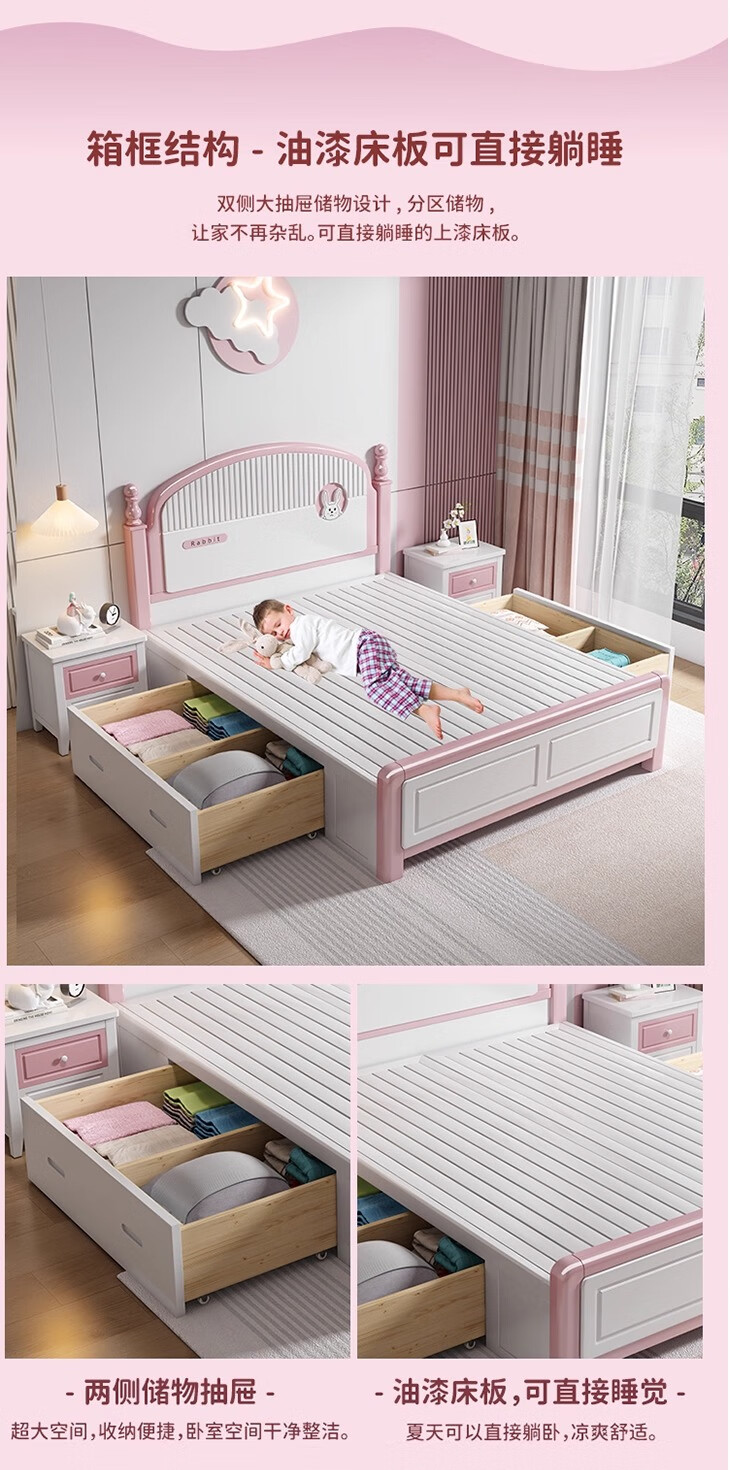 Oka Star solid wood children's bed 1.2m1.5m pink girl princess bed baby girl bedroom furniture cute single bed bed+20cm latex spring mattress+bedside table*2 1500*1900