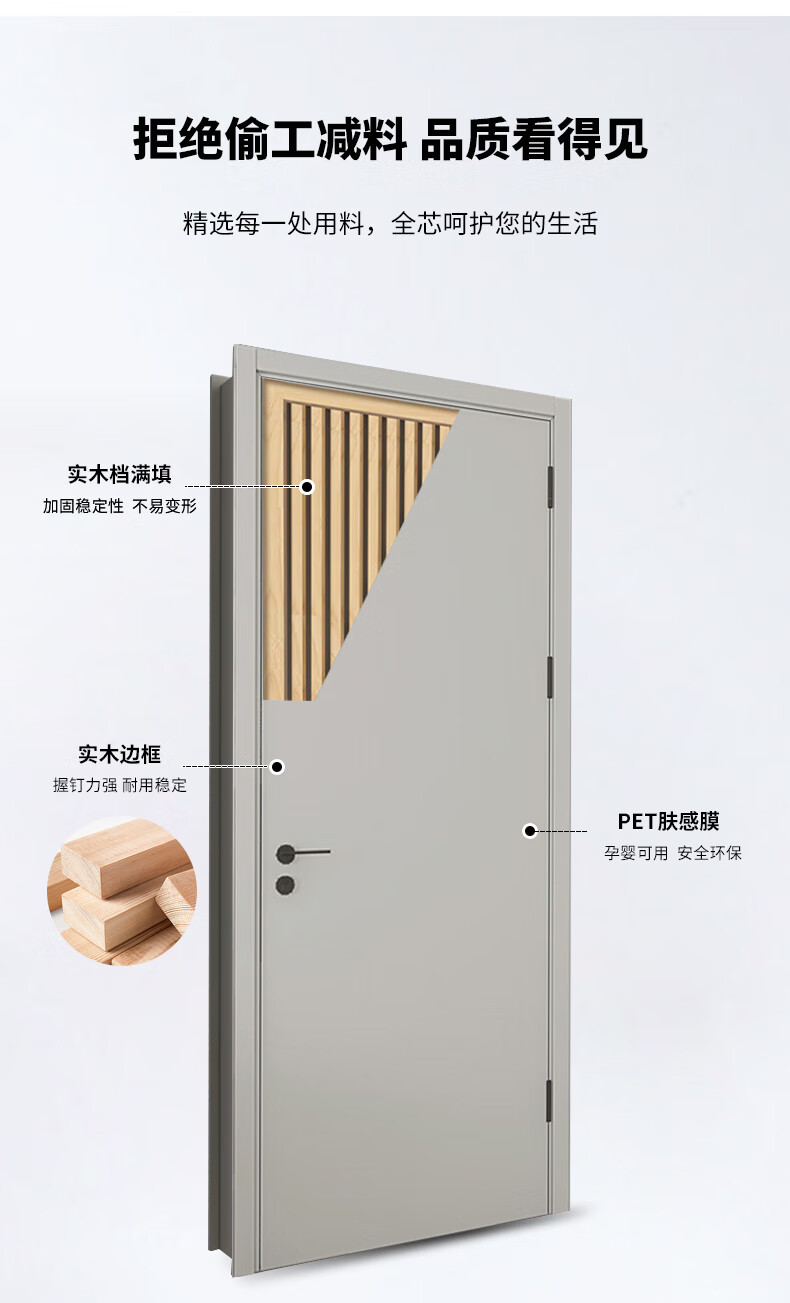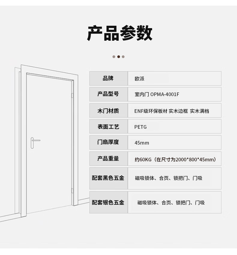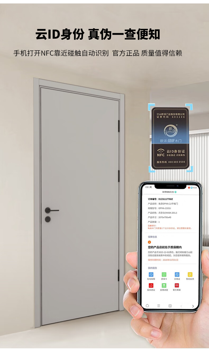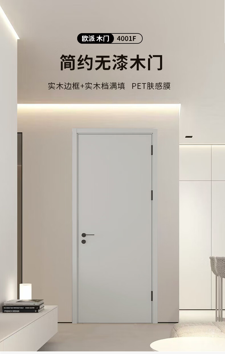 Oupai (OUPAI) Oupai wooden door bedroom door indoor wooden door room door paint-free solid wood composite door set door silent door no paint door and door frame a set of customized Jiangshan wooden door package installation 4F moonlight white complete set of doors double package door package + Oupai high-quality hardware + locks customized