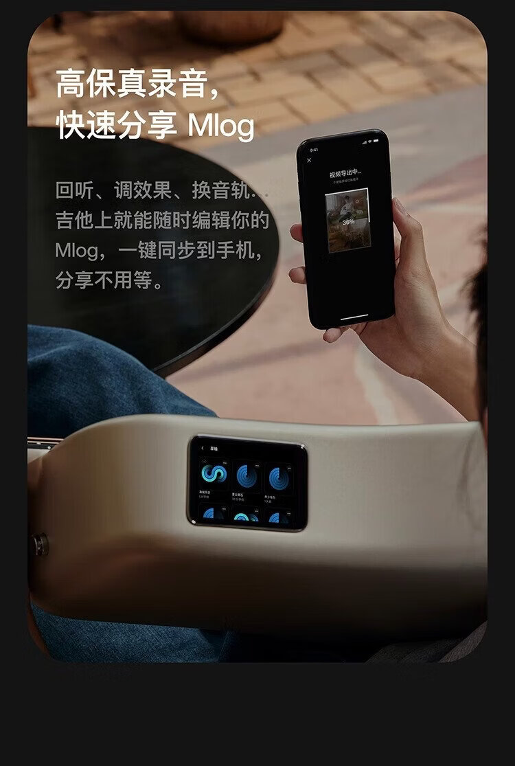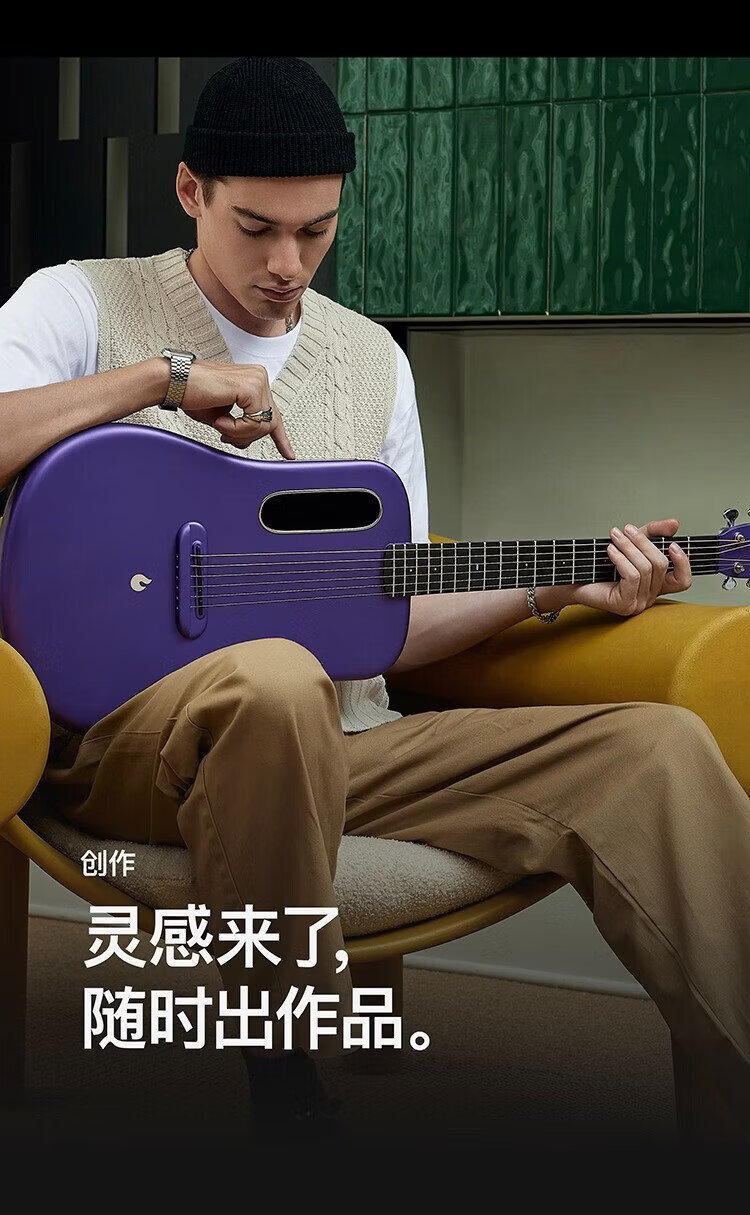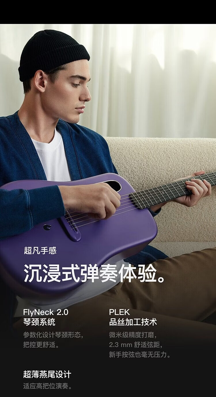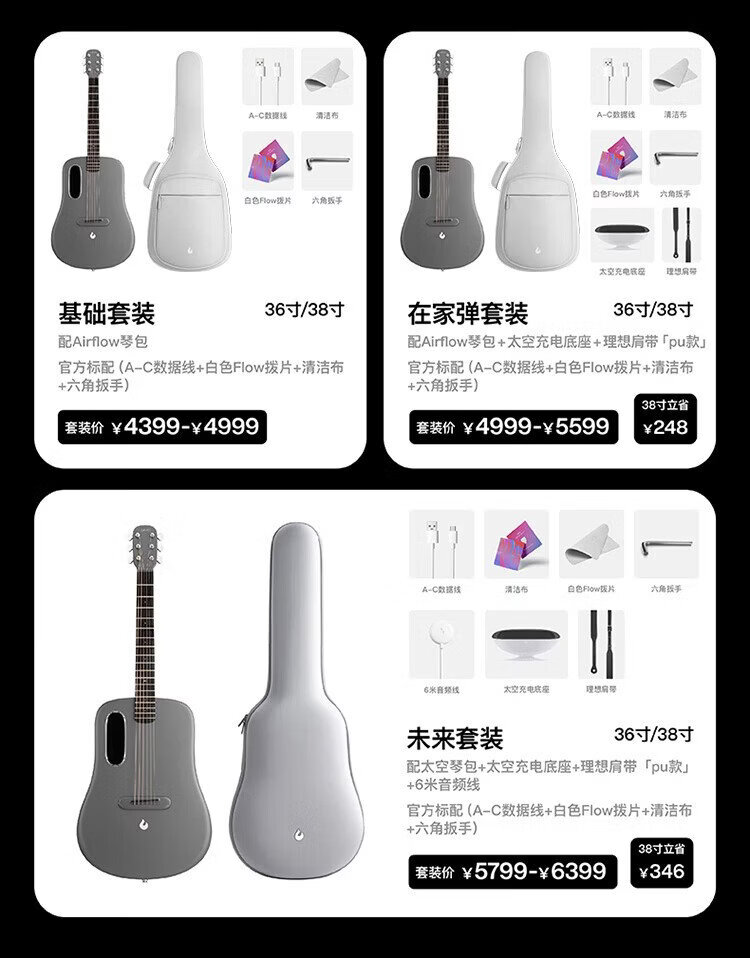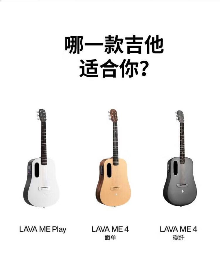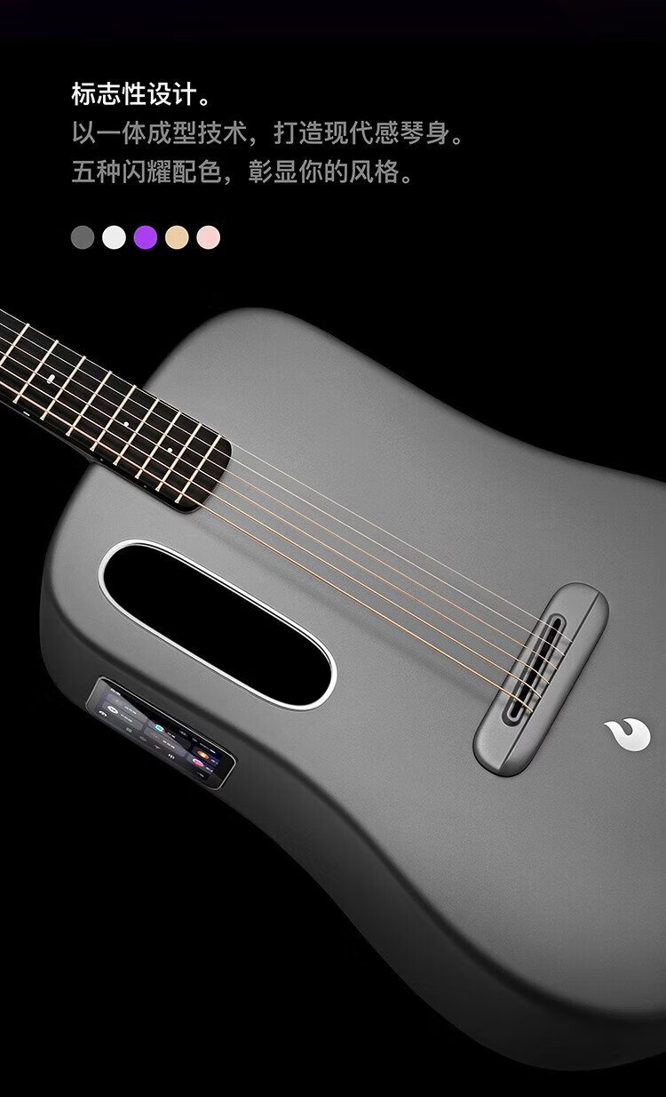 LAVAGUITAR, the same model as Mayday, LAVA ME 4 smart folk guitar for beginners, ultra-light carbon fiber professional guitar, 36-inch dark gray basic set