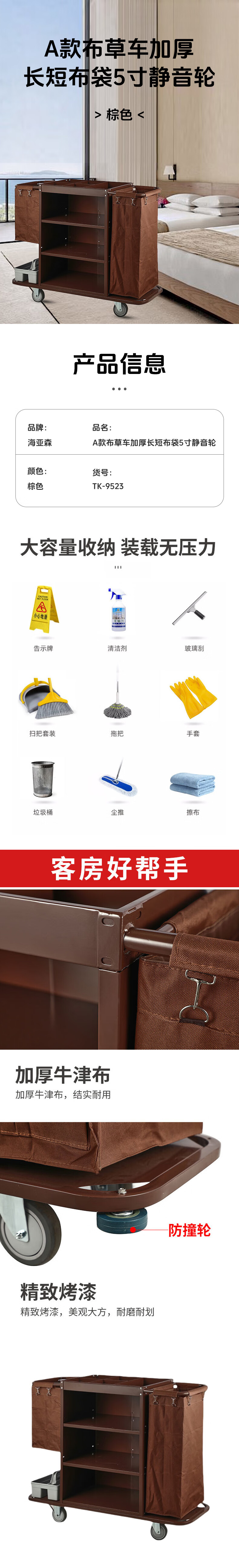 Hyasen TK-9523A linen truck cleaning truck thickened long and short bag 5-inch silent wheel (unit vehicle) brown 2
