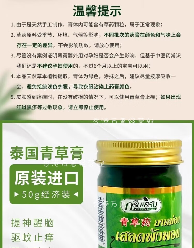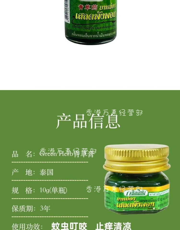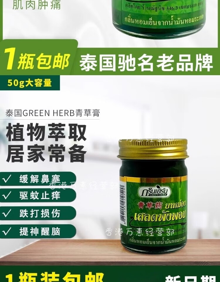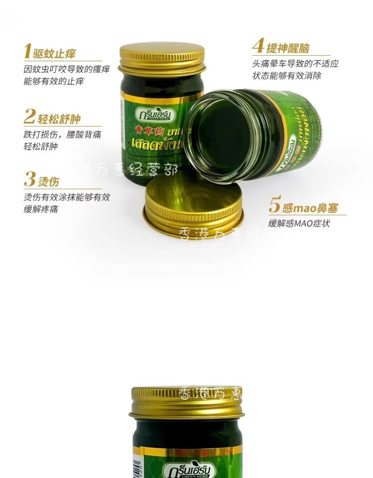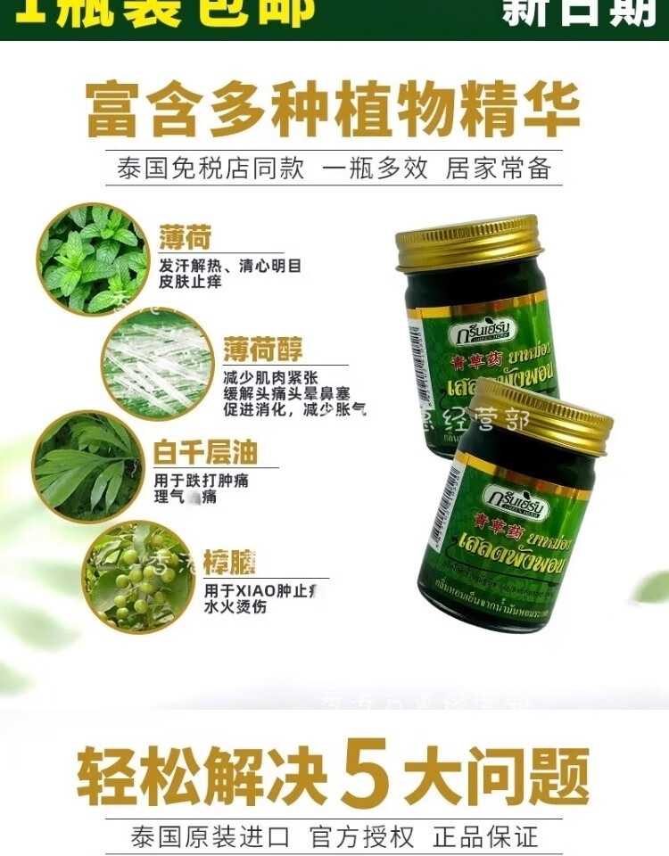 Reclining Buddha brand Thai green herb grass ointment original imported authentic green herb ointment cooling oil refreshing and refreshing anti-itching ointment 50g * 2 bottles special offer
