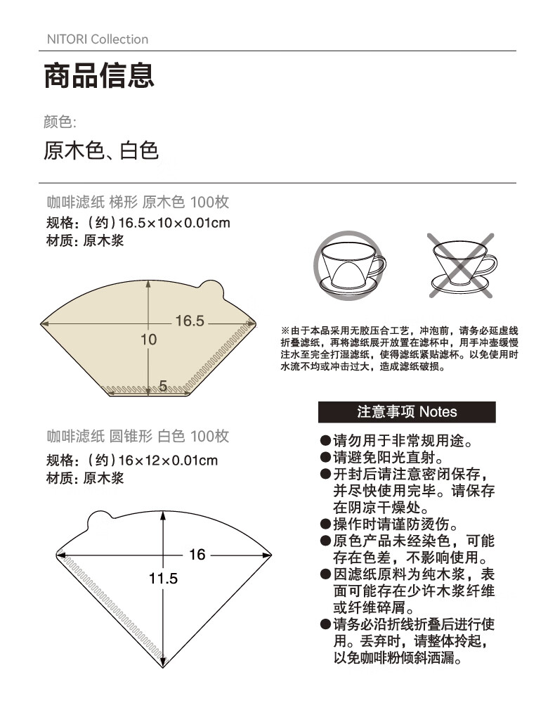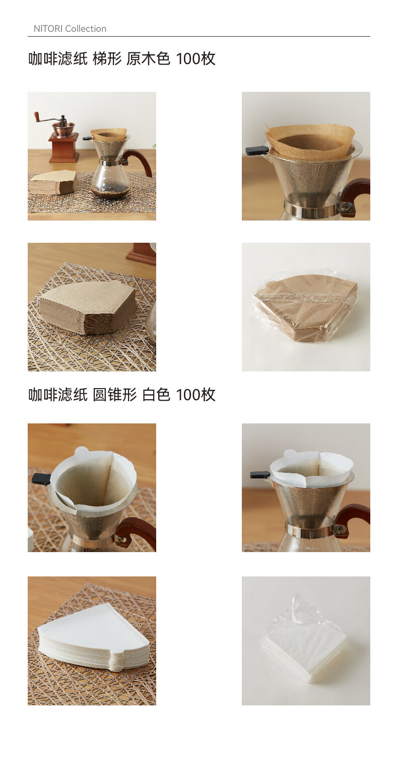 NITORI Yideli Home Furnishing Log Pulp Portable Drip Hand-brewed Coffee Powder Filter Paper Conical Trapezoid Trapezoid Wood Color 100 Sheets