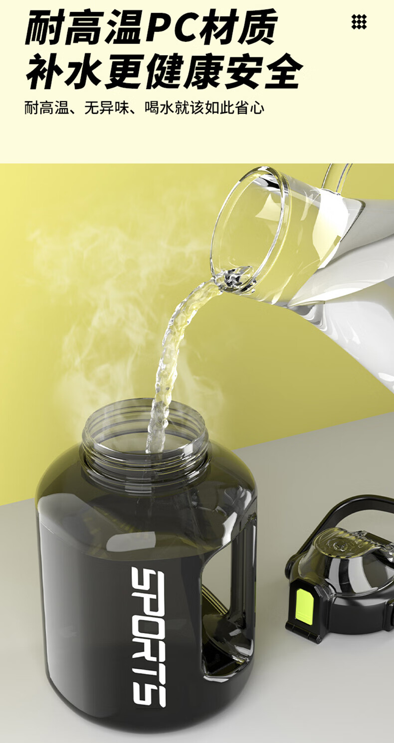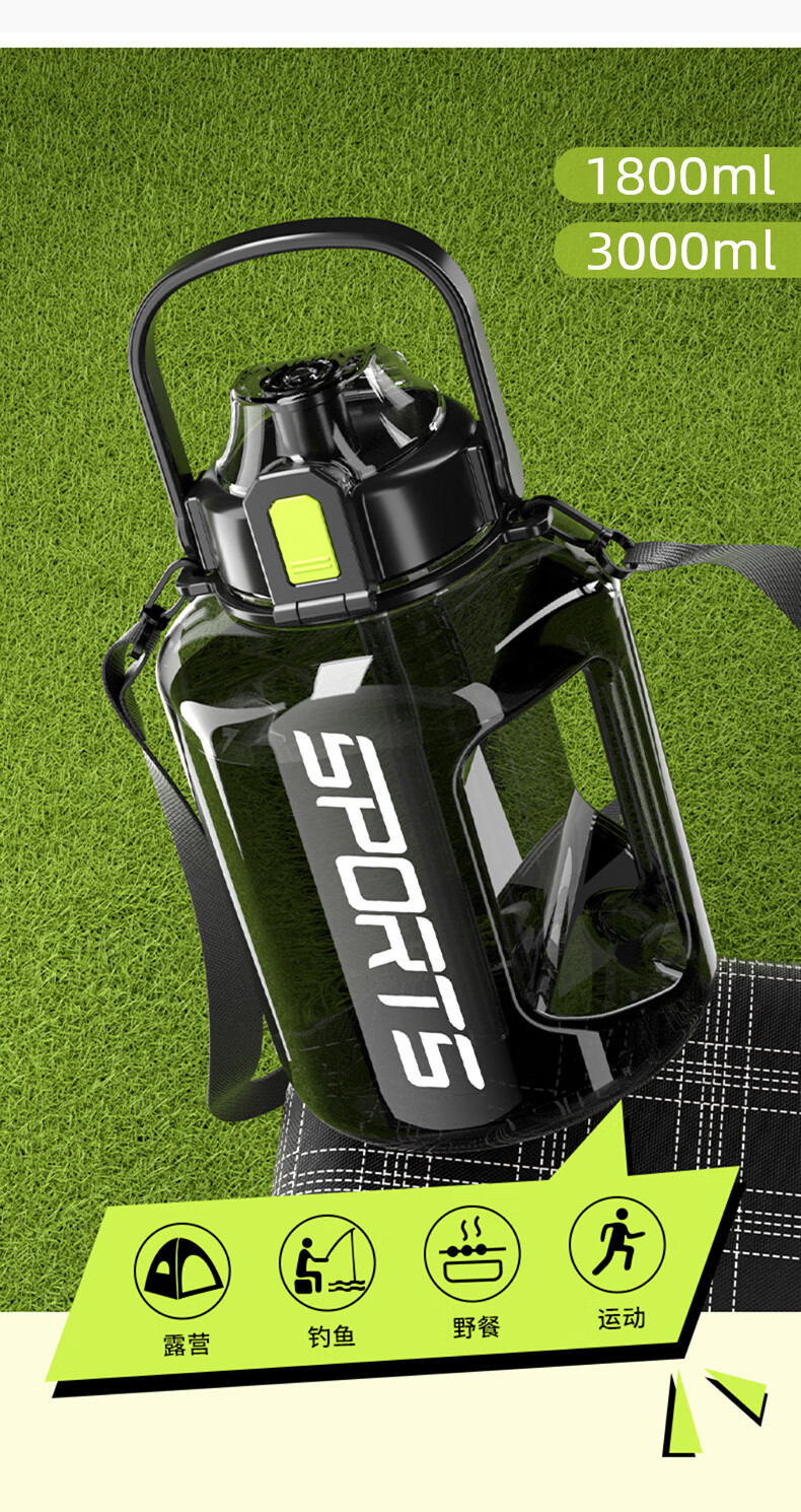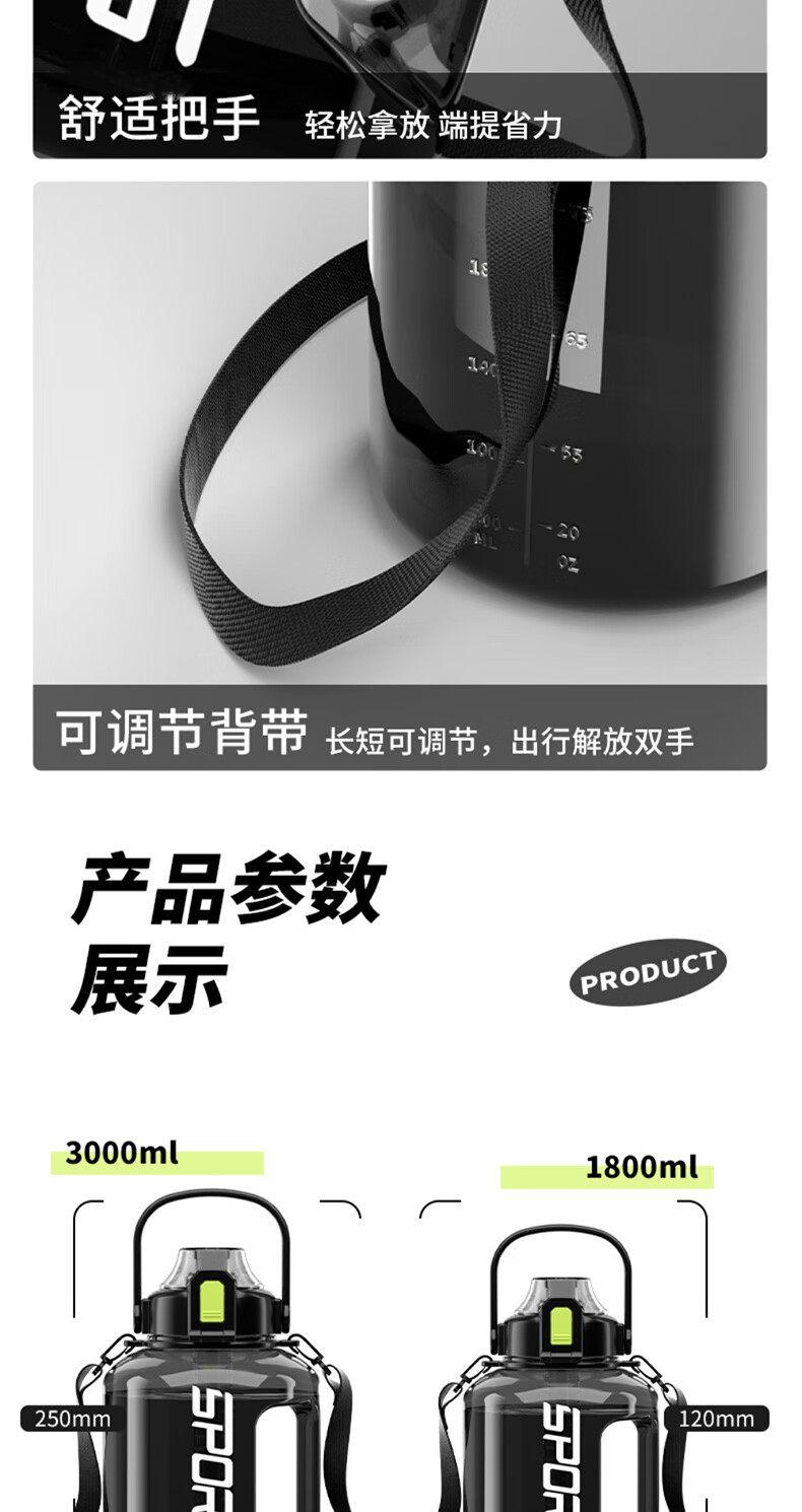 SZTAA water cup large capacity ton barrel high temperature resistant sports kettle men and women portable fitness kettle plastic cup 3000ML+strap+cup brush+straw+tea warehouse